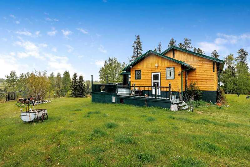 An eclectic log cabin-style home nestled on a peaceful, expansive property perfect for horse lovers and outdoor enthusiasts alike. This charming and eclectic, turn of the century, estate home boasts a massive mechanics dream garage, two roomy corrals, and fully fenced, and a private gated entry. A greenhouse on-site allows for year-round gardening, ideal for nurturing your favorite plants through every season. Step inside to a warm and inviting entryway paired with a full 4-piece bathroom. The kitchen features a 5 burner gas stove with the power line for electric. Adjacent to the kitchen, the inspired from Paris -dining room. Also a handy pantry for extra storage. The main floor also offers a cozy bedroom and an oversized living room, where a wood-burning stove sets a welcoming, rustic ambiance. From the living room, you can access a bright, sheltered sunroom -the perfect spot to unwind and enjoy stunning views of rolling hills and picturesque sunsets. Downstairs in the newer concrete, dry, basement, discover an indoor sauna for ultimate relaxation, three additional bedrooms, and a newer renovated spa bathroom complete with a luxurious soaker tub and separate shower — perfect for soothing away the day’s stresses. The basement also features a laundry area, a spacious walk-in closet, 3 bedrooms and a cold room, providing ample space for storage and organization. RV hookups add convenience for guests or extra accommodations, while the outdoor sauna cabin offers a serene retreat in nature. With vast land full of possibilities, this property is an ideal country lifestyle haven. This beautiful home has been lovingly maintained and upgraded, including a steel roof, log cabin siding, and newer windows throughout most of the house. A newer hot water tank and a well-maintained furnace provide added peace of mind. From the oversized garage and spacious decks to the thoughtfully planted flowers, trees, and bushes that surround the property, this home radiates care and charm. Whether you’re seeking a stunning primary residence or a peaceful second property, this is an exceptional opportunity. All of this, and you’re just 10 minutes from Sundre! Don’t miss the chance to make this remarkable retreat your own. Make an offer- motivated.