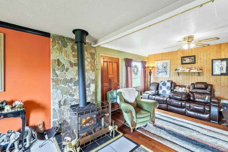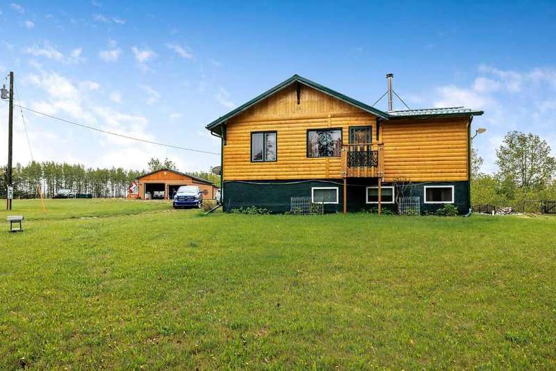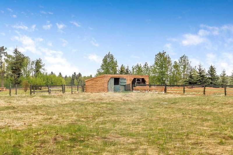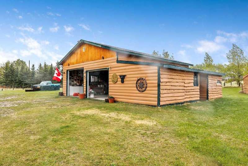 An eclectic log cabin-style home nestled on a peaceful, expansive property perfect for horse lovers and outdoor enthusiasts alike. This charming and eclectic, turn of the century, estate home boasts a massive mechanics dream garage, two roomy corrals, and fully fenced, and a private gated entry. A greenhouse on-site allows for year-round gardening, ideal for nurturing your favorite plants through every season. Step inside to a warm and inviting entryway paired with a full 4-piece bathroom. The kitchen features a 5 burner gas stove with the power line for electric. Adjacent to the kitchen, the inspired from Paris -dining room. Also a handy pantry for extra storage. The main floor also offers a cozy bedroom and an oversized living room, where a wood-burning stove sets a welcoming, rustic ambiance. From the living room, you can access a bright, sheltered sunroom -the perfect spot to unwind and enjoy stunning views of rolling hills and picturesque sunsets. Downstairs in the newer concrete, dry, basement, discover an indoor sauna for ultimate relaxation, three additional bedrooms, and a newer renovated spa bathroom complete with a luxurious soaker tub and separate shower — perfect for soothing away the day’s stresses. The basement also features a laundry area, a spacious walk-in closet, 3 bedrooms and a cold room, providing ample space for storage and organization. RV hookups add convenience for guests or extra accommodations, while the outdoor sauna cabin offers a serene retreat in nature. With vast land full of possibilities, this property is an ideal country lifestyle haven. This beautiful home has been lovingly maintained and upgraded, including a steel roof, log cabin siding, and newer windows throughout most of the house. A newer hot water tank and a well-maintained furnace provide added peace of mind. From the oversized garage and spacious decks to the thoughtfully planted flowers, trees, and bushes that surround the property, this home radiates care and charm. Whether you’re seeking a stunning primary residence or a peaceful second property, this is an exceptional opportunity. All of this, and you’re just 10 minutes from Sundre! Don’t miss the chance to make this remarkable retreat your own. Make an offer- motivated.