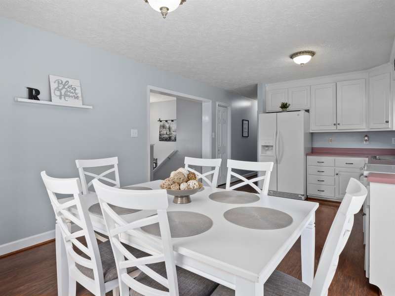 Immaculate split-foyer home on 0.214-acre private lot at desirable Rhoda St, boasting recent updates including a new roof and HVAC system. This charming residence features an open floor plan seamlessly connecting the kitchen, living, and dining areas, perfect for modern living. The main level offers three spacious bedrooms and two full bathrooms, with a mix of laminate, carpet, and vinyl flooring throughout. The finished basement includes a cozy family room, a convenient laundry/storage room, and an oversized two-car garage. Enjoy city water/sewer and energy-efficient vinyl windows. Step outside to a peaceful, private rear patio, ideal for relaxation or entertaining, complemented by two storage outbuildings for extra space. This move-in-ready home blends comfort, style, and practicality in a serene neighborhood setting, perfect for families or anyone seeking a well-maintained property with modern upgrades.