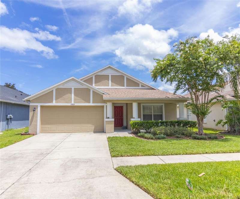 One or more photo(s) has been virtually staged. Step into possibility with this spacious 4 bedroom / 2 bath home in the heart of Land O Lakes! Nestled on a generous lot with strong bones and endless potential, this property is perfect for buyers ready to personalize and build equity from day one. With NO CDD fees, a very low HOA, and NO FLOOD insurance required, this home is truly a rare gem. Upgrades include: New Roof (2023), Water Heater (2022), A/C (2015), and Updated Electrical Panel with sub-panel pre-wired for a generator. Residence sits on an oversized, 101-foot-wide fenced lot with conservation views, offering both privacy and peaceful scenery. Step inside to discover 10-foot ceilings, a soft, neutral palette, and large windows and sliding doors that fill the home with natural light. The welcoming foyer opens to a spacious formal living and dining area, ideal for entertaining. The kitchen is a chef's dream, offering ample cabinetry, stainless steel appliances, and a convenient bar area for casual dining. A breakfast nook and family room, both with sliding glass doors, seamlessly connect to the tiled patio, perfect for enjoying outdoor activities. The thoughtfully designed split-bedroom floor plan ensures comfort and privacy for everyone. Retreat to the primary suite, where you’ll find a large picture window, dual walk-in closets, and an en suite bathroom featuring a soaking tub, separate shower, double vanity, and grab bars for added safety. The expansive backyard features mature palm and fruit trees, brick walkways, and multiple garden spaces. There’s plenty of room to add a pool or create your dream outdoor oasis. This home is ideally located near top-rated schools, shopping, dining, golf courses, and just minutes from State Road 54, with easy access to Tampa and major highways.