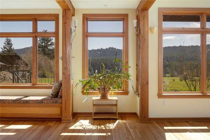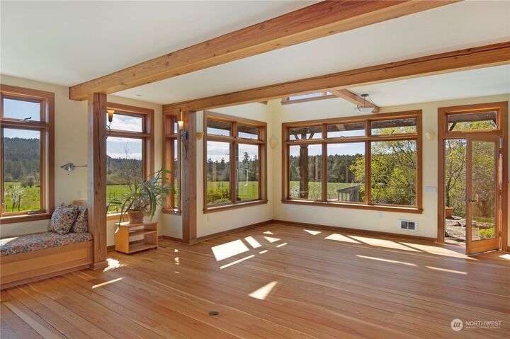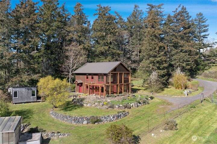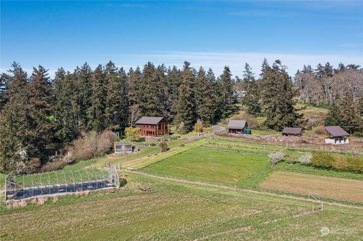Stunningly beautiful & private 30 acre farm on the West side of San Juan Island. Large pastures, excellent soil, mostly fenced; perimeter, pastures & additional inner deer fencing for orchard & garden areas. Pond w/tunnel irrigation to barn, etc. extra warm micro climate in this private westside valley area provide excellent weather for growing crops. Berries, vineyard grapes, apples, plums, kiwis, figs, seed crops & more. This farm was previously home to Chickens & Sheep that were pastured here in previous years. Large hoop house has new skin & is optional with sale. Beautiful Northwest contemporary timber frame home built by Ravenhill construction features open living concept, wood floors, vaulted ceilings and abundant passive solar.