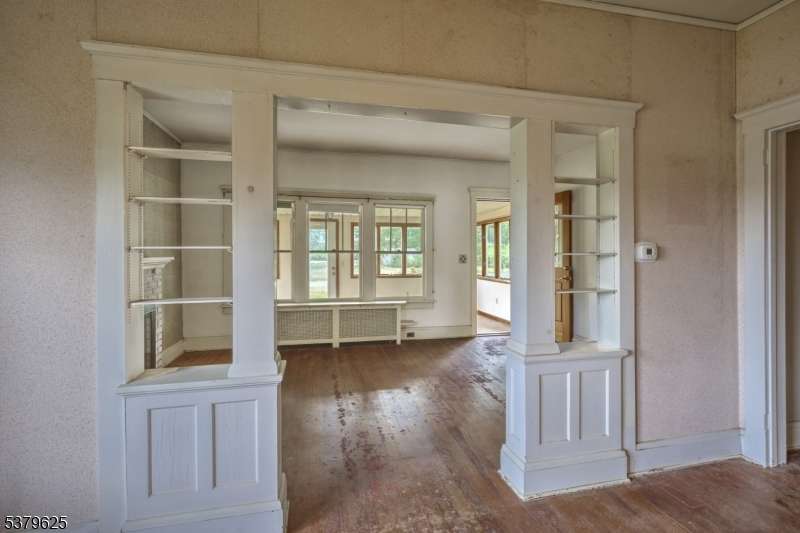 Wonderful over one acre lot backing up to protected wooded parkland. Vintage Cape Cod with 9 ft. first floors and open floorplan, versatile floorplan with 2 beds and 2 baths on first floor plus 2 smaller rooms upstairs. There are wood floors and built-in cabinetry the windows have been replaced with insulated glass ones. The home has 2 side porches plus a large enclosed front porch. There is an oversized 2 car garage with large storage room at the rear. The home is in need of complete interior renovations and currently the older knob and tube wiring is being replaced. The home is being sold subject to environmental issues only. Otherwise, its 100% as is. Any inspections are for informational purposes only.