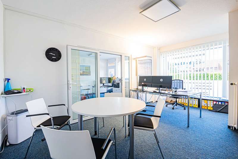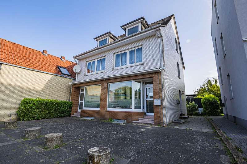 ... This residential and commercial building, built in 1950, could soon be yours. A total of approx. 157 m² of living and commercial space is spread over three floors. The commercial unit on the first floor (approx. 60 m²) is divided into three offices, a warehouse and a WC. The apartment on the upper floor (approx. 60 m²) has two and a half rooms, a kitchen and a daylight bathroom with bathtub and separate WC. The living room and bedroom are a pleasant size and the kitchen offers access to the north-facing balcony. The top floor apartment (approx. 37 m²) offers two rooms, a kitchen and also a daylight bathroom with bathtub. Sufficient storage space is provided by the full basement. The property is currently fully let and generates a net annual rent of €13,463.76. Have we piqued your interest? Then give us a call, arrange a viewing and let us convince you of a property with versatile design and usage options as well as great development potential!