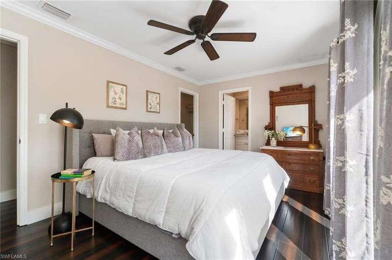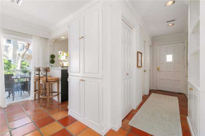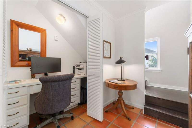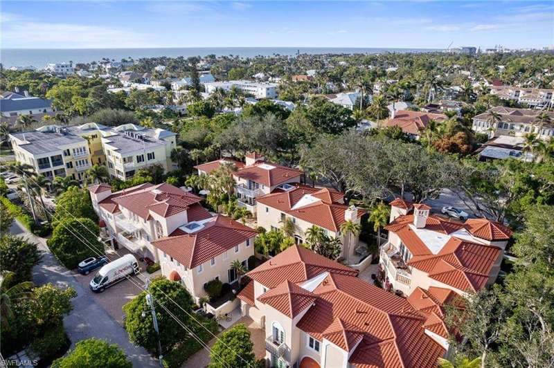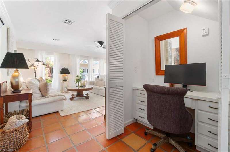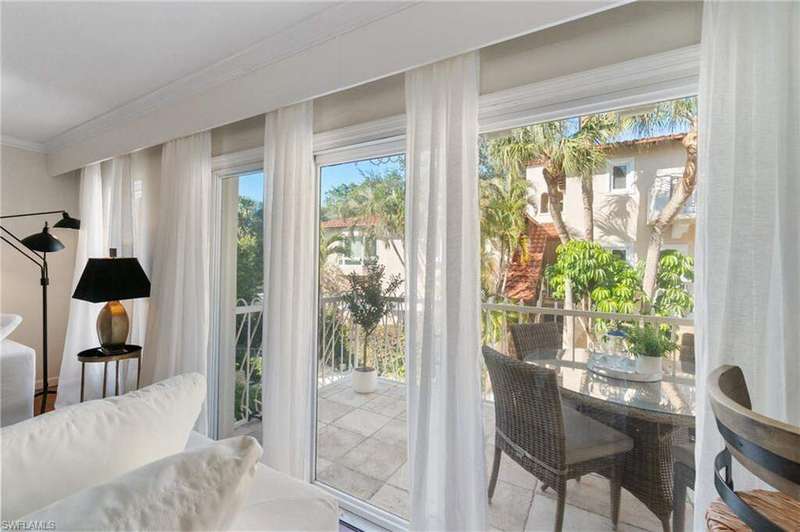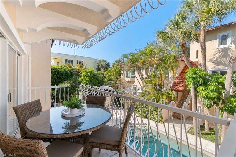 Welcome to Shadowmoss - one of the most admired addresses in Old Naples, perfectly positioned between the white sands of the Gulf and the iconic 5th Avenue South. Surrounded by world-class dining, boutique shopping, and cultural experiences, this is truly a WALK-EVERYWHERE lifestyle. With only nine exclusive residences, a rare find, Unit #2B, has been meticulously maintained and is the perfect pied-a-terre. Rich in character with authentic Mexican tiles, banks of arched stained-glass French doors, and four generous balconies capture southern light and offer tranquil pool views. A freestanding spiral staircase leads to a private entry, while touches of Mizner's classic vision are seen throughout - from intricate stonework and elegant archways to the enchanting courtyard with moss-covered fountains. Recent roof replacements and no hurricane flooding from Ian provide peace of mind. Furnished and move-in ready, this 2-bedroom, 3-bath residence also includes a private garage and two dedicated parking spaces. Shadowmoss is not just a home - it's a rare blend of historic beauty and modern convenience, designed for those who appreciate the art of living well.