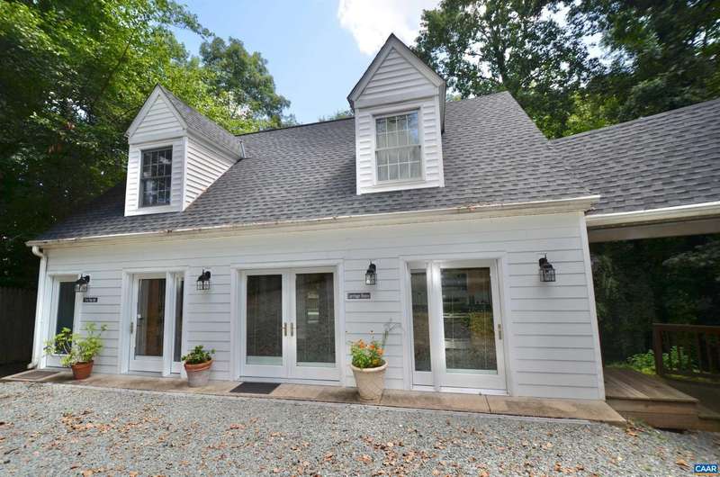 Tucked away near UVA and Barracks Road shopping, discover a private in-town compound offering flexible living on a sprawling 0.92-acre lot. This gracious classic estate, complete with a separate guest house or home office, allows you to enjoy nature right at home. Designed for entertaining, both inside and outside on three decks. The property features multiple primary suites, kitchens, and bathrooms. With owner financing available for half the purchase price, you can generate significant income from one or more AirBnBs or rentals while residing in the main house.,Granite Counter,White Cabinets,Wood Cabinets,Fireplace in Great Room,Fireplace in Living Room