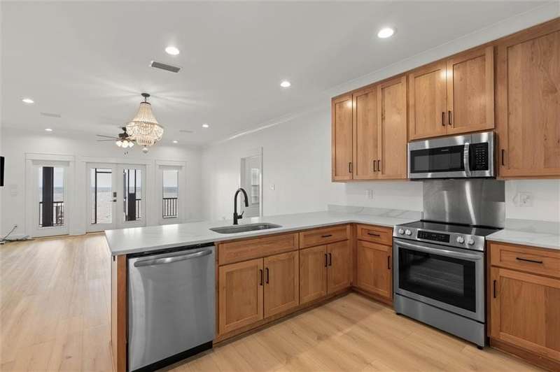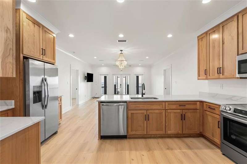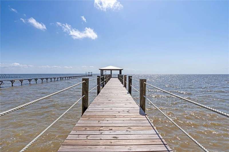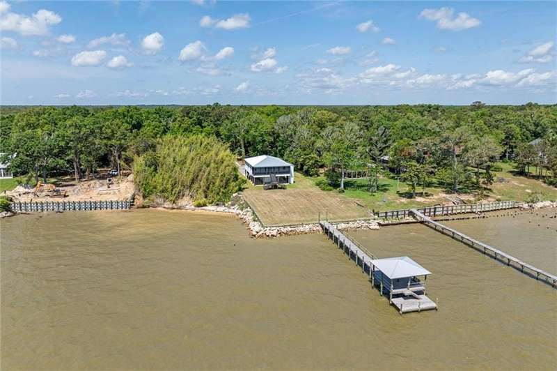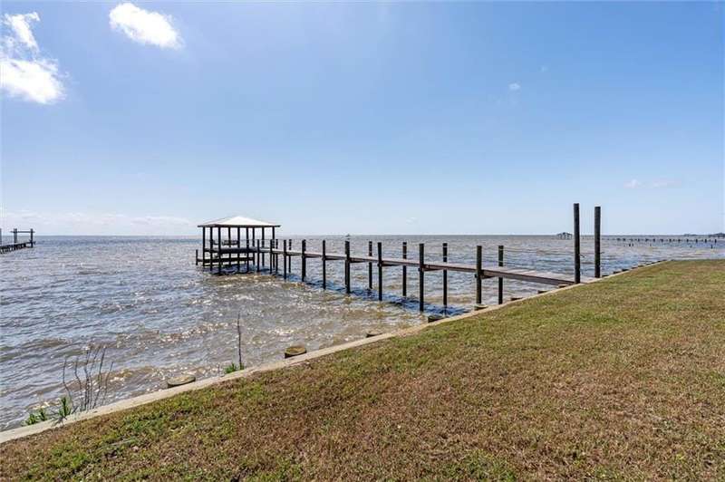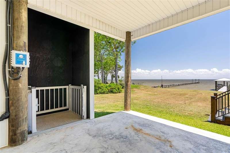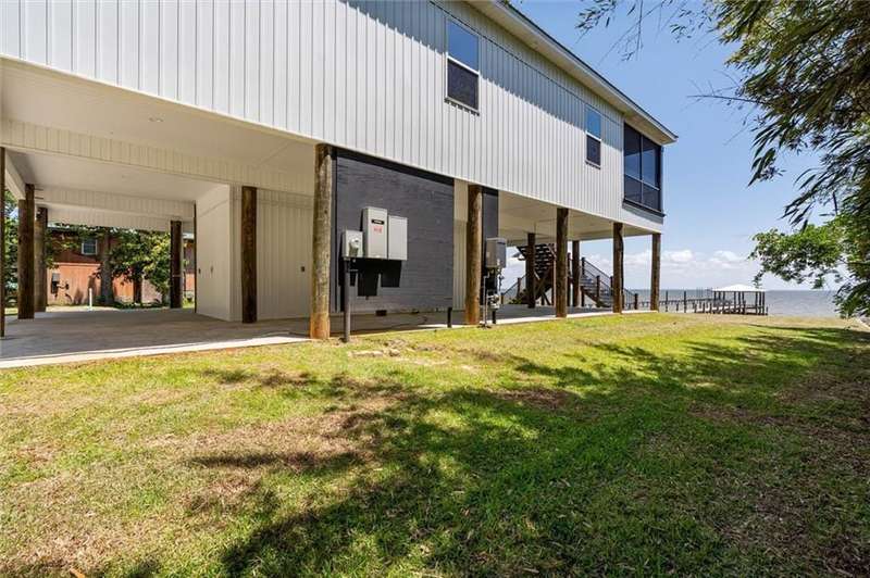 Price reduction on this waterfront homenow $1.149,900. If youve been dreaming of a waterfront investment home, welcome to this brand-new, Gold Fortified, bayfront home located on Mon Luis Island, built by Steve Greene, designed for both relaxation and entertainment. With 5 spacious bedrooms and 5 baths, plus a bonus room, theres room for everyone to enjoy the Gulf Coast lifestyle. Thoughtfully designed and handicap accessible with a built-in elevator, this raised home combines functionality with elegance. Step into the open-concept living and kitchen area, where custom cabinetry, quartz countertops, and included stainless steel appliances create the perfect space for gathering and unwinding. The entire back of the home opens to a full-length screened-in porch, offering panoramic bay views and front-row seats to breathtaking sunsetsyour new favorite hobby. Outside, a brand-new bulkhead and sturdy pier with dock and two charming swings invite endless hours of waterfront enjoyment. A tankless water heater ensures comfort, and Starlink internet keeps you connected no matter where you are. This home is packed with extras: a large storage room on the main level, a full ground-level bath, and a newly installed pickleball court!! A brand new camera system has been installed and will convey to the buyers. Plus, theres ample parking for at least 6 vehicles under the home, with additional gravel parking in back. Whether youre looking for a serene second home or a full-time waterfront retreat, this bayfront haven is turn-key and ready to impress. Dont miss your chance to own a slice of paradise! Buyer should verify all pertinent information, including square footage.
