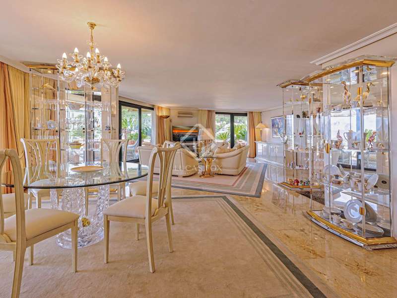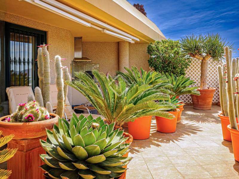 This luxurious and prestigious condominium located in a prime location on the Costa Blanca, designed by a renowned Spanish architect, Carlos Gilardi. The property offers breathtaking panoramic views to the Mediterranean Sea and Altea, which can be enjoyed from the large 145 m2 terrace surrounding the property. The condominium itself features an extra large living room and two spacious bedrooms, each with private bathroom. The well-equipped kitchen includes all amenities and has an adjacent pantry for added convenience. In addition, the property also includes a private parking space on the same level as the condo and additional guest parking. There are two large swimming pools on the property, both with stunning views of the Mediterranean and the picturesque village of Altea. At 5 minutes from the Don Cayo golf club and 5 minutes from the marina Puerto Campomanus. The building has 24 hour private security, providing added peace of mind for residents. This is a highly desirable property for anyone looking for a luxurious and convenient living experience on the Costa Blanca.