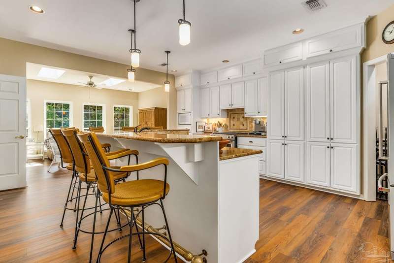 Welcome to this meticulously maintained one-owner home in Baybrook. From the moment you enter, you will appreciate the care and upkeep that has gone into this spacious 3-bedroom, 2-bathroom property, offering a perfect balance of comfort and modern living. Ideal for entertaining or everyday enjoyment, the home features a brand new roof (2025), 2024 KitchenAid stainless steel gas range and refrigerator, GE wall oven, microwave, and an under-counter ice maker designed for hosting large gatherings. Thoughtful upgrades provide peace of mind, including a whole-house natural gas generator, new gutters (2021), new windows (2022), and improvements from Rebuild NW FL in 2013 that added tie-downs, skylights, and shutters. Additional features include two HVAC units for year-round comfort and a gas tankless water heater for efficiency. Relax on the screened back porch and enjoy the privacy and serenity of the lush green space behind the home. This turnkey property is move-in ready, conveniently located just minutes from shopping, dining, and local amenities. A must-see home that will not last long-schedule your showing today.