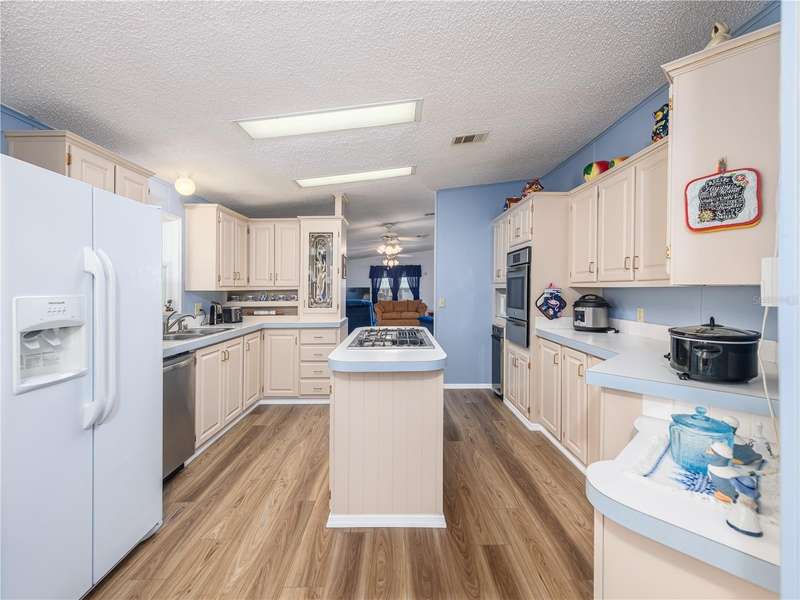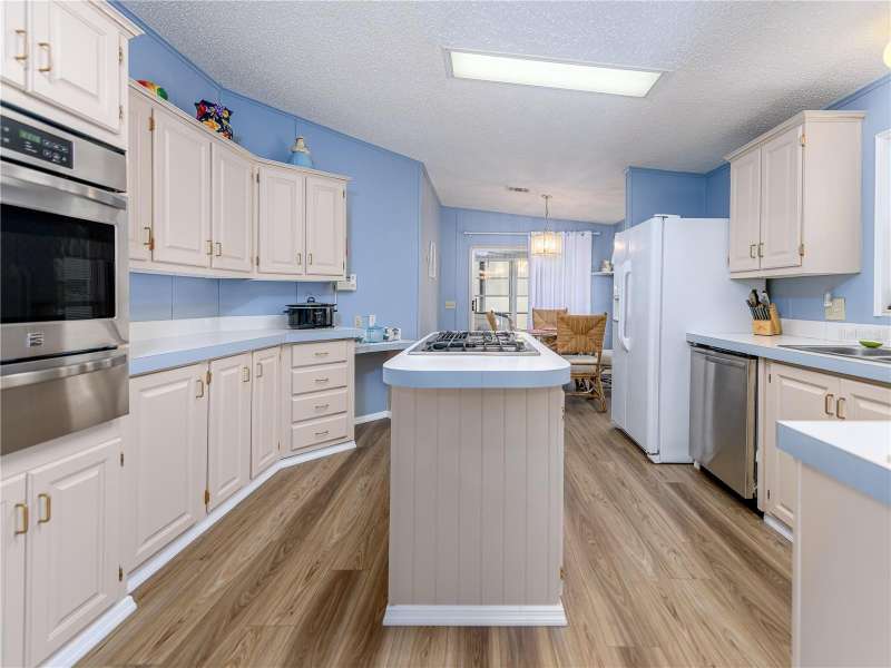 This is one of the nicer, more spacious homes you’ll see! 4050 Carefree Way has room for you and guests with 2 bedrooms, 2 full bathrooms, living room, formal dining, kitchenette, and bonus space in the massive primary bedroom that is currently used as an office. Like to get fancy in the kitchen? Whip something up on the propane-powered cooktop. You have no next door neighbors to the south so you can enjoy your morning coffee on the rear patio or enclosed sunroom in peace. Conveniently located in western Zephyrhills, you are near everything you’ll need for your day-to-day life whether it be in Zephyrhills or Wesley Chapel and beyond. But you’re also tucked away in a small, cozy 55+ neighborhood, perfect if you want a quieter way of life. There’s no lot rent in South Hill and the low HOA fee includes pool, clubhouse, and shuffleboard. The membrane roof is maintained every year and you’ll enjoy an AC system and ductwork that was replaced in 2024. Plumbing and windows have been replaced in recent years as well. Schedule a tour to see for yourself the space, functionality, and quiet living this home would provide.