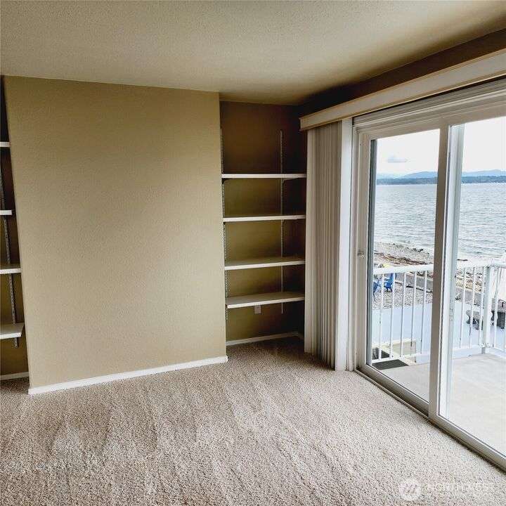 Sandy Point Shores no-bank waterfront townhouse condo (both bedrooms on 2nd floor, both with views, one with view balcony and large walk-in closet) Well-insulated, newer double-pane windows and doors. Propane fireplace w/circulation fan keeps unit economically warm & toasty w/zoned electric heat as backup. Unfurnished 960 sqft. 2 bed/1.75 bath (3/4 bath on main floor and shared full hall bath upstairs), fully applianced unit. Spectacular San Juan Island views, sunsets, wildlife activity and tranquility at the very end of a private lane. Only four units (two part-time residents & one other renter) Please note that this is a 55+ community (at least one person in each unit must be 55+ years old) Rent $1,750/mth, incl. fixed utilities W/S/G/In