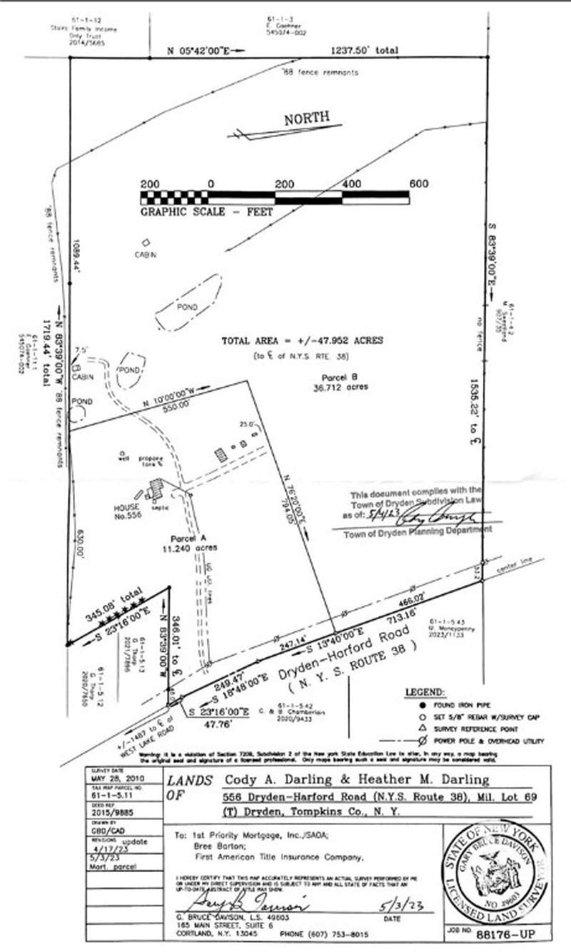 Incredible 36+ Acre Homestead Opportunity with Views, Water Features, and Cabin in Dryden, NYNestled on 36.712 scenic acres along Dryden Harford Road, this one-of-a-kind property offers an ideal mix of open fields, mature woodlands, and two large spring-fed ponds. Set atop a gentle hillside, the land promises expansive eastern views where morning sunrise pours golden light over the trees. Whether you're dreaming of building a private estate, establishing a sustainable homestead, or creating a recreational getaway, this land offers limitless potential. A charming off-grid log cabin sits quietly on the property, powered by a solar array and ideal as a rustic hunting camp or weekend retreat. With ample red and sugar maples, the current owners have enjoyed producing small-batch maple syrup, showcasing the land's rich agricultural potential.The varied topography easily accommodates future development?from a dream home with panoramic views to a working barn or outbuildings for animals or equipment. Fields are well-suited for gardens, grazing, or crops, while the wooded sections offer privacy, trails, and abundant wildlife habitat.Located just a short drive from Ithaca, NY and a mile from Dryden Lake, this property offers the rare combination of seclusion, beauty, and accessibility. Whether you're looking to escape the city, build a self-sufficient lifestyle, or simply enjoy nature at its finest, this land is ready to inspire your vision.