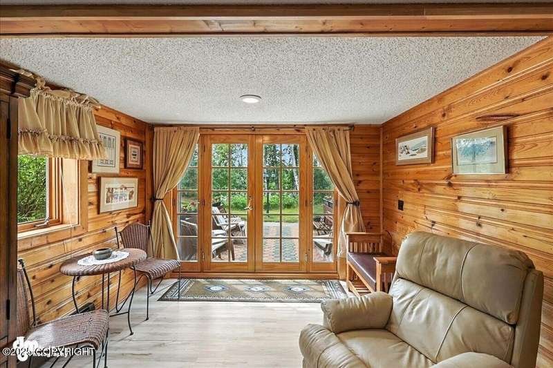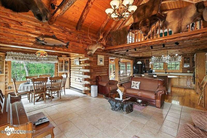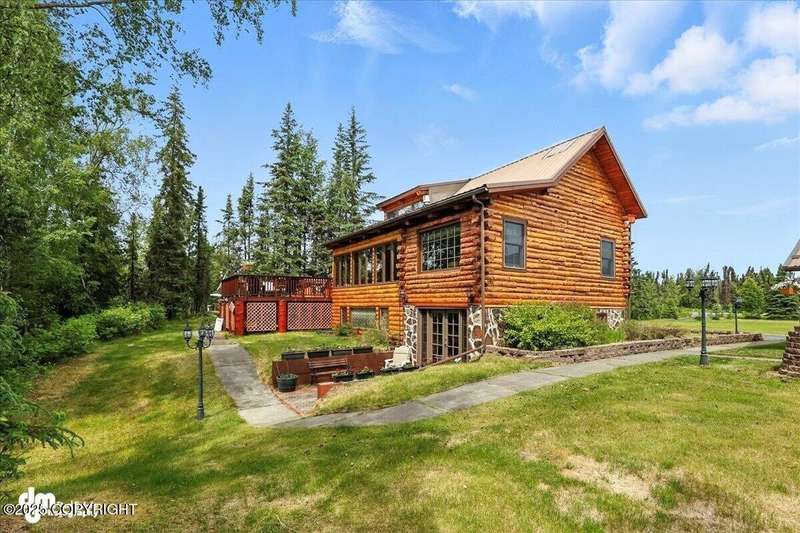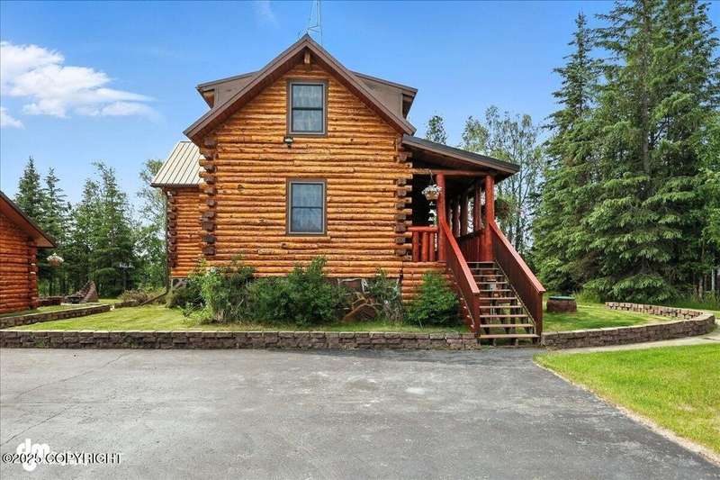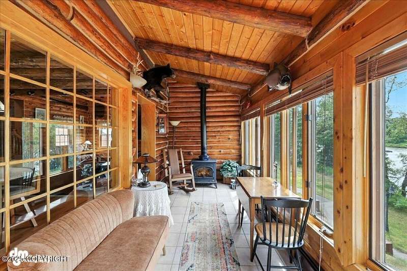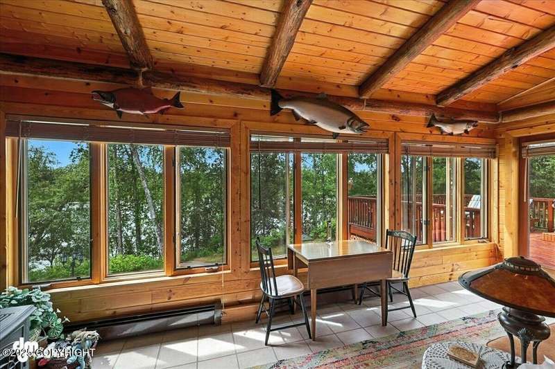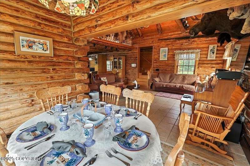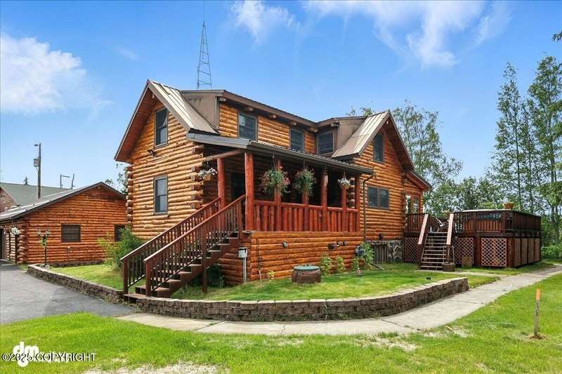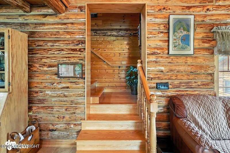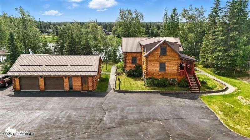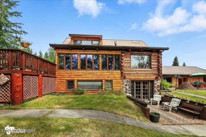 KENAI RIVER LOG HOME! Three-story home with detached garage, just minutes from town. Successful B&B for years. Inside features 5 beds & 3 baths with large windows, two kitchens, and two living rooms. Additionally, there are 2 gas fireplaces, a large deck, solid surface countertops, and ample storage! Paved circle driveway.Stiars to river w/a 44ft elevated fishing walkway. Great river frontage! House is being sold turn-key with all furnishing, artwork and supplies. (only personal items excluded) This property can be your dream river retreat, a full rental downstairs with a walk out to the river, or a fully functioning B&B/VRBO on the river. Endless possibilities and opportunities.