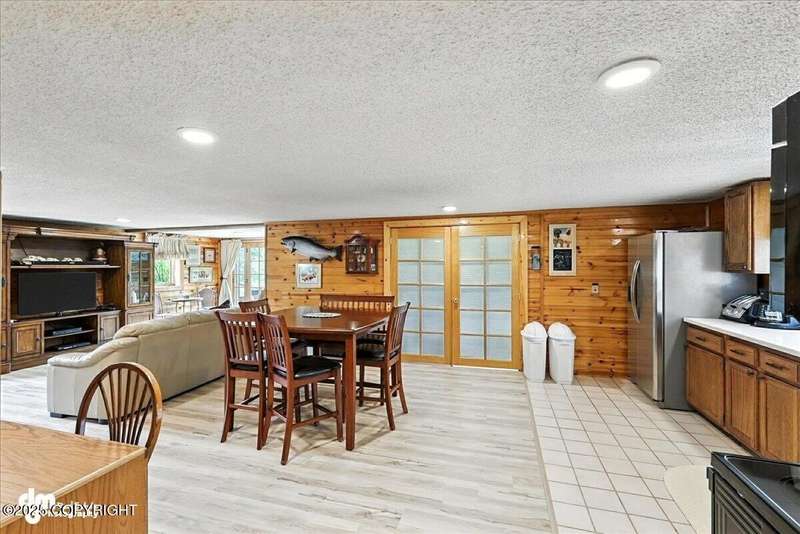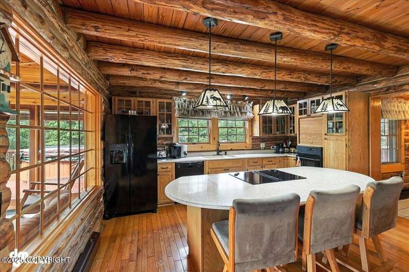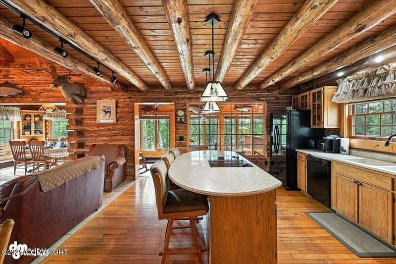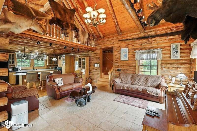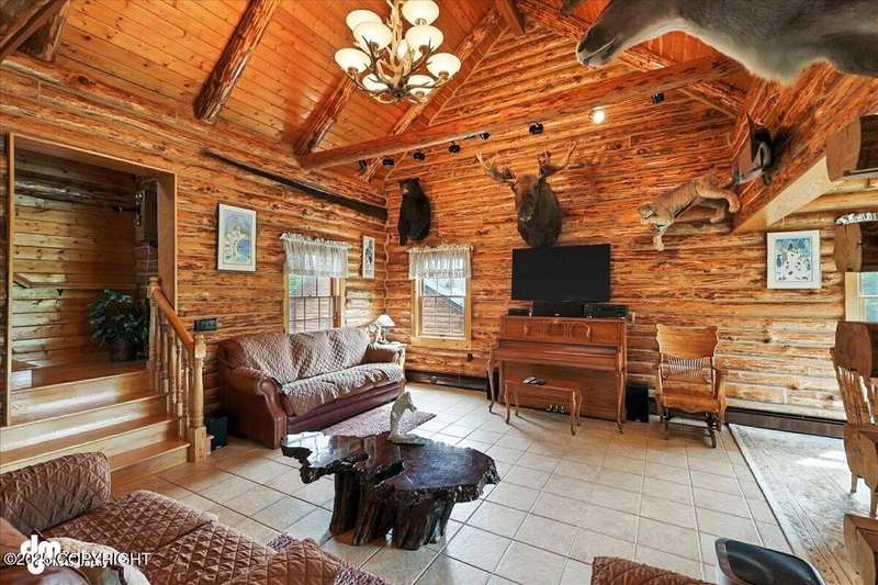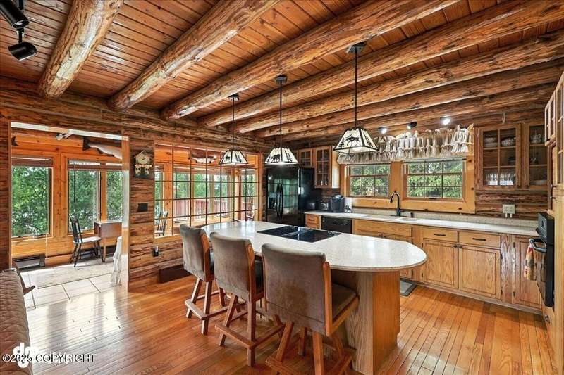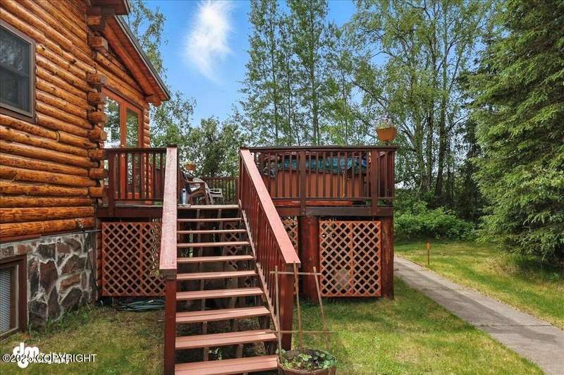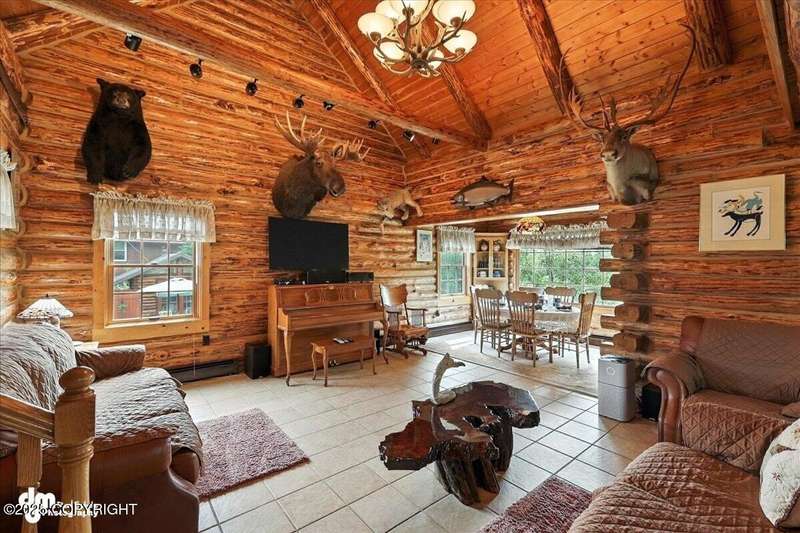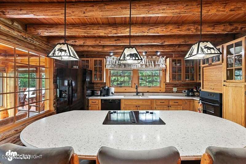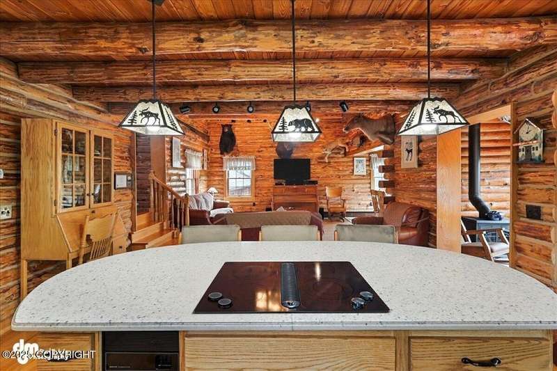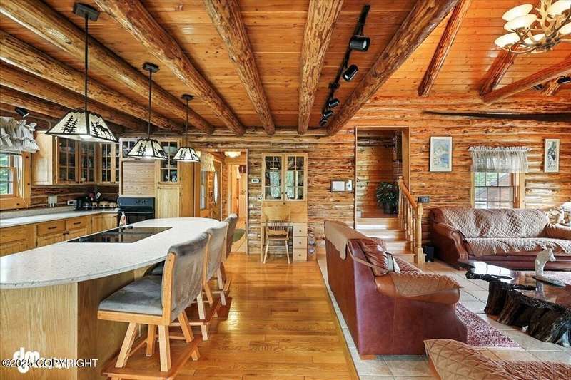 KENAI RIVER LOG HOME! Three-story home with detached garage, just minutes from town. Successful B&B for years. Inside features 5 beds & 3 baths with large windows, two kitchens, and two living rooms. Additionally, there are 2 gas fireplaces, a large deck, solid surface countertops, and ample storage! Paved circle driveway.Stiars to river w/a 44ft elevated fishing walkway. Great river frontage! House is being sold turn-key with all furnishing, artwork and supplies. (only personal items excluded) This property can be your dream river retreat, a full rental downstairs with a walk out to the river, or a fully functioning B&B/VRBO on the river. Endless possibilities and opportunities.