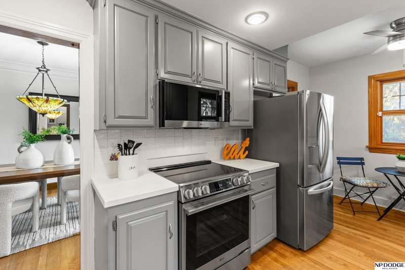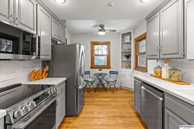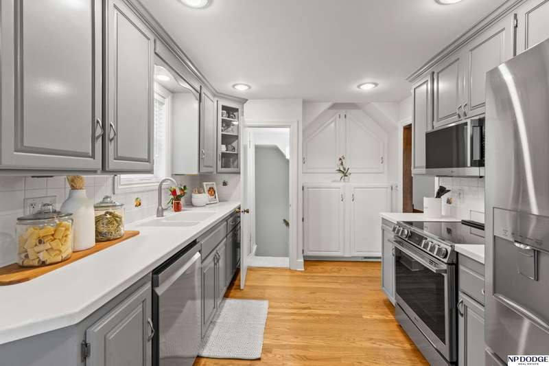 This clean move-in ready Historic Country Club residence blends timeless character w/modern updates. Handsome Wood Floors & Fresh Paint! Tiled Entry, Front Facing Living Rm w/New Fireplace Insert! Formal Dining w/Sliding door to gigantic freshly-stained Deck. Eat-In Kitchen: New SS Appliances, Freshly Painted Cabinets, New CF & Window over Sink! Main Bath & Spacious Bedrooms. UPPER LEVEL: Primary Bedroom w/Full en-suite, Shower & Sauna, Cathedral Beamed Ceilings & New Carpet. LOWER LEVEL: Rec-Room w/New Carpet, Walk-out to 1-Car Garage. Utility Rm w/Washer/Dryer, Great Storage & Extra Refrigerator! EXTERIOR: Deep Driveway for plenty of off-street parking, Level Fully-Fenced Back-yard w/Deck. SCHOOL DISTRICT: Omaha Public. CLOSE TO: Benson, Dundee, Schools, Shopping,Restaurants,Golf, Parks,Rec, 23 Min to Offutt AFB. UTL AVGS: OPPD=$128 /MUD=$184 New Roof pending manufacturers warranty claim/see Disclosure forms for more info! Buyer also receives a 1-Year 2-10 Home Warranty at closing!