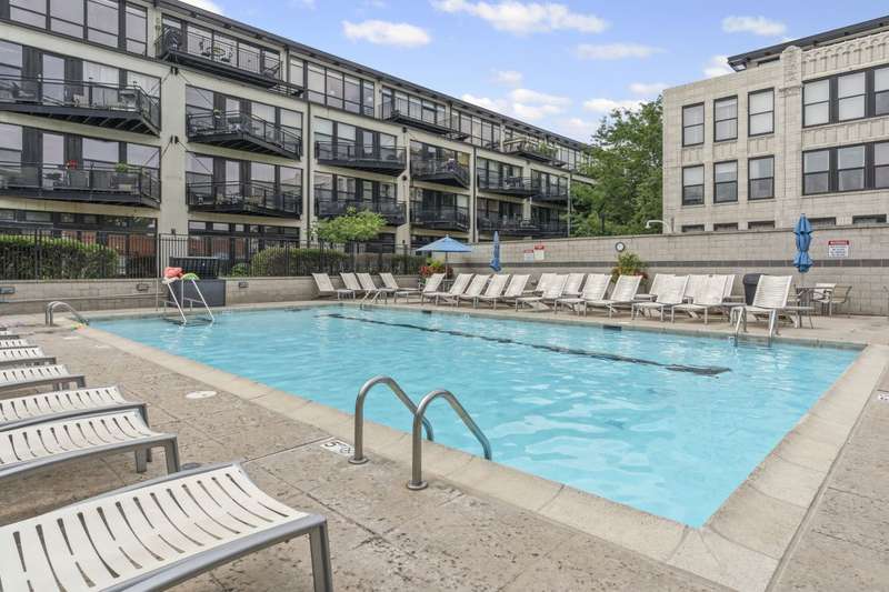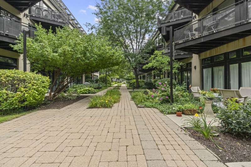 FULLY TURNKEY, FURNISHED chic urban condo in Little Italy on the 1st floor of University Commons. Featuring an expansive large private outdoor terrace entrance to the home, with generous entertaining and gardening space within the vibrant city. This first-floor unit shines with soaring ceilings, exposed columns, oversized windows & hardwood floors. Enjoy the expansive open concept floor plan complete with custom built-ins including a separate beverage refrigerator and buffet. This split two bedroom, 2 full bath floor plan is versatile for all ages and stages of life. The primary suite is equipped with a murphy bed and built-in storage, PLUS an en-suite full bath boasting dual vanities! Immerse yourself in an environment where elegance meets functionality, featuring amenities such as an elevator to the rooftop deck, a pool and gym as well as party/theatre rooms and onsite management. Enjoy the luxury of heated garage parking and generous storage. This updated contemporary furnished unit is nestled in one of Chicago's most beloved neighborhoods. All you need to do is bring your tooth brush. Available Now! Six month lease available. Furnished completely seldom offered in this location!
