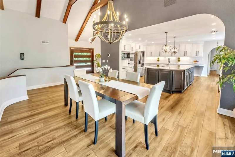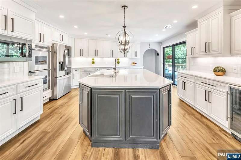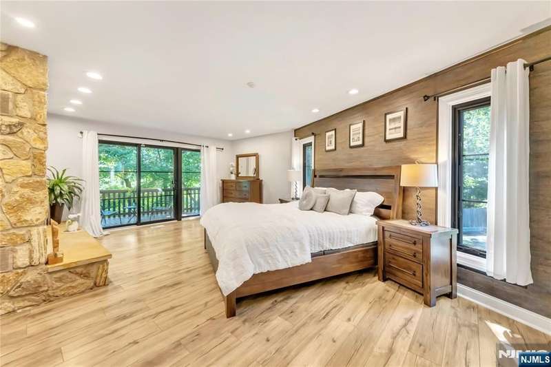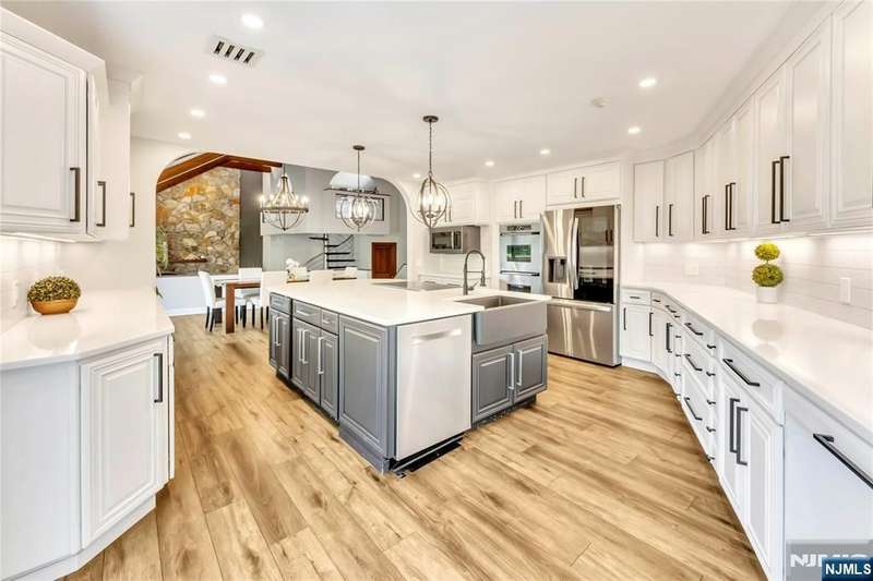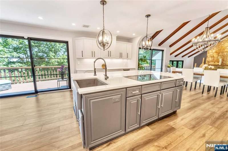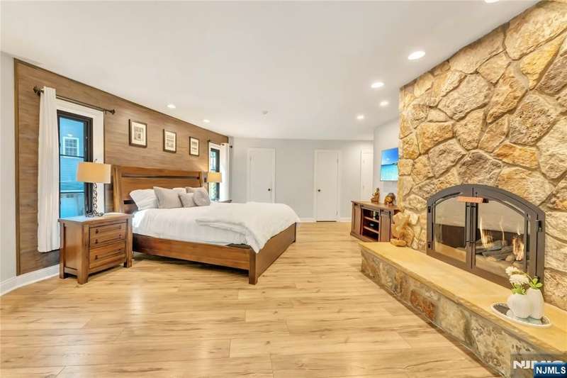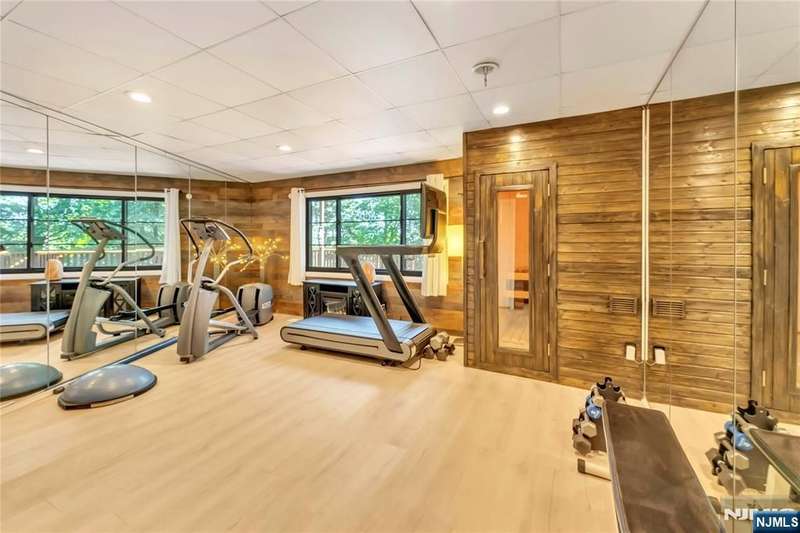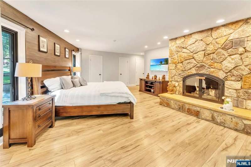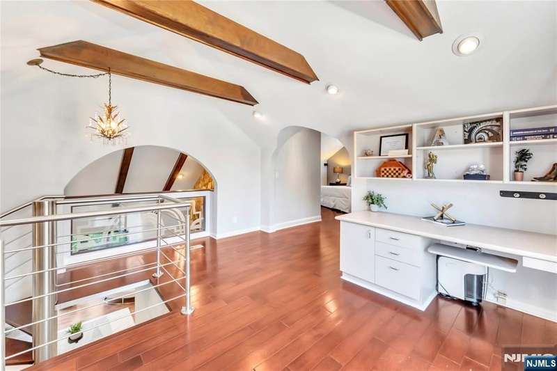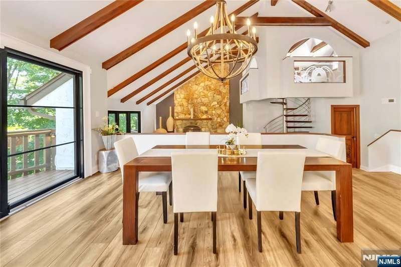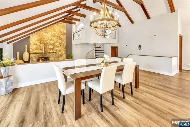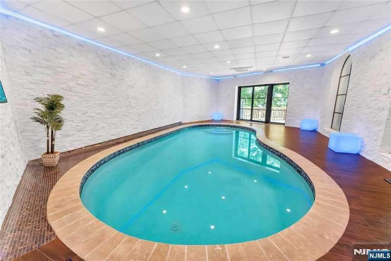 STUNNING SPANISH VILLA-STYLE ESTATE MILLION-DOLLAR SKYLINE VIEWS PRIVATE OASIS SPA RETREAT at the end of a private cul-de-sac, this fully renovated Spanish villa-style showpiece offers breathtaking skyline panoramas and million-dollar views from nearly every room. Nestled on beautifully tiered, exotically landscaped grounds with architectural lighting, it perfectly blends privacy with Mediterranean elegance.Step inside through a handcrafted pivoting front door into a grand living space featuring high, soaring wood-beamed ceilings, one of three dramatic stone fireplaces, and a flowing open floor plan. Entertain in the formal dining area and gourmet chef's kitchen with quartz counters, oversized island, pro-grade appliances, and access to three expansive, newly renovated outdoor decks with lighting.The first-floor primary suite is a private retreat with deck access, fireplace, dual walk-in closets, and a spa-inspired bath with soaking tub and Euro shower. Upstairs: a home office with balcony and en-suite guest suite. The showstopping lower level includes a year-round indoor saltwater pool, steam shower, 4 person jacuzzi, dry heat sauna, and a custom walnut waterfall bar with cast-iron accents overlooking the skyline. Topped with a custom re-designed red Spanish terra-cotta roof, state-of-the-art garage w/frosted glass doors, full-house generator, smart security, and ceiling-height custom patio doors/windows that bathe the home in natural light.