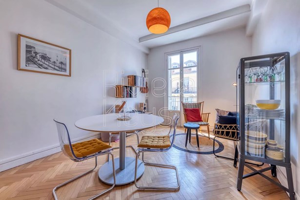 Located in the center of Nice, a few steps from Thiers train station, this 50.59 sqm bourgeois apartment (Carrez law) is on the ground floor of a Nice building dating from 1935.