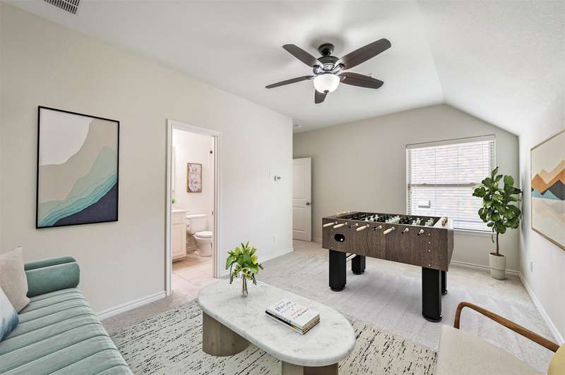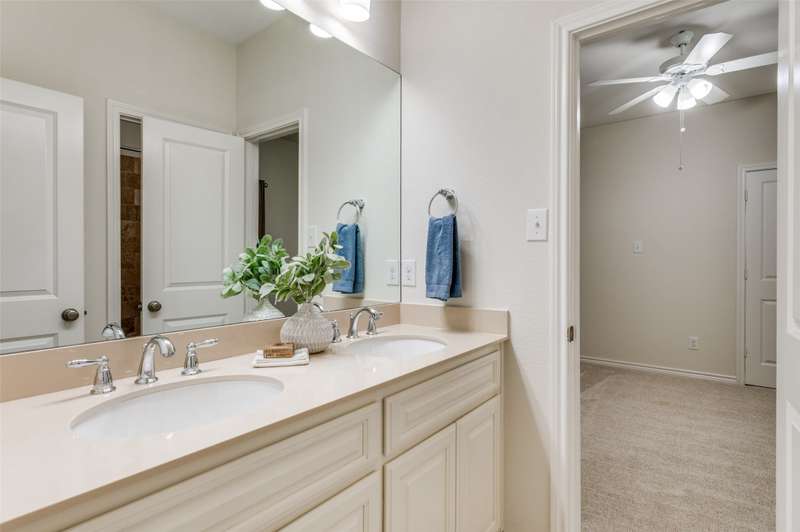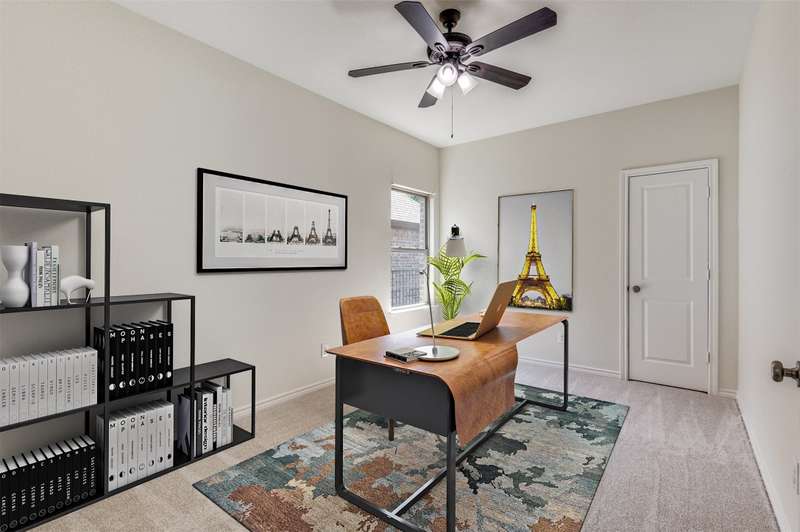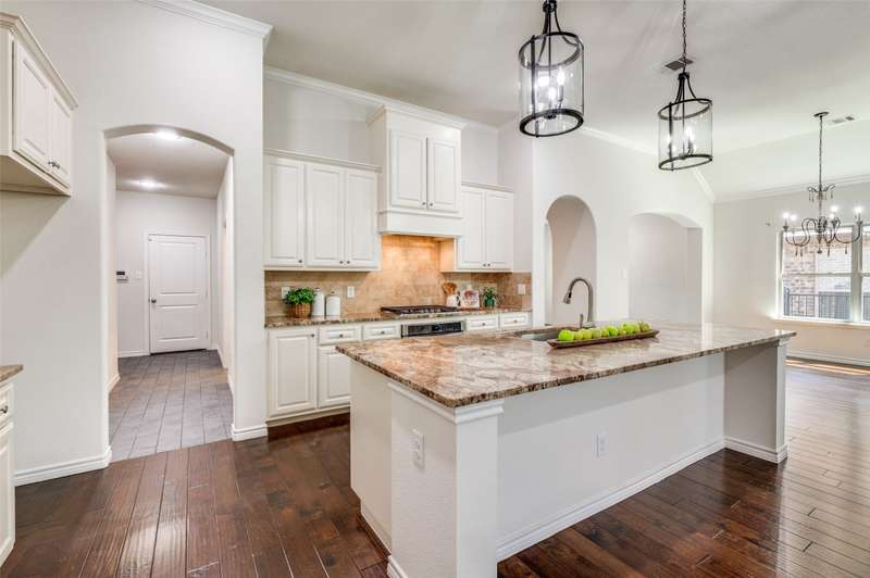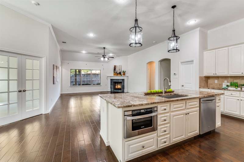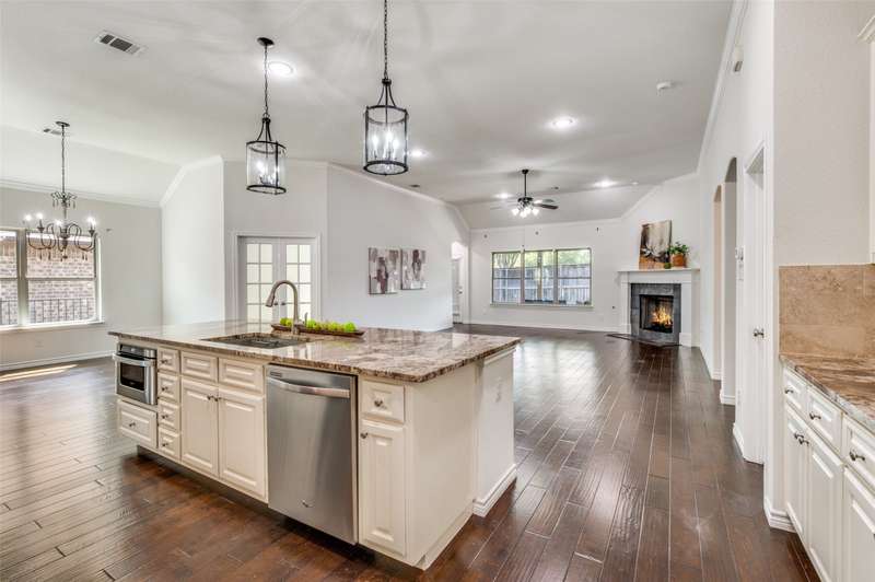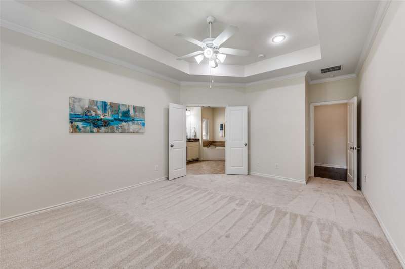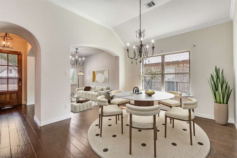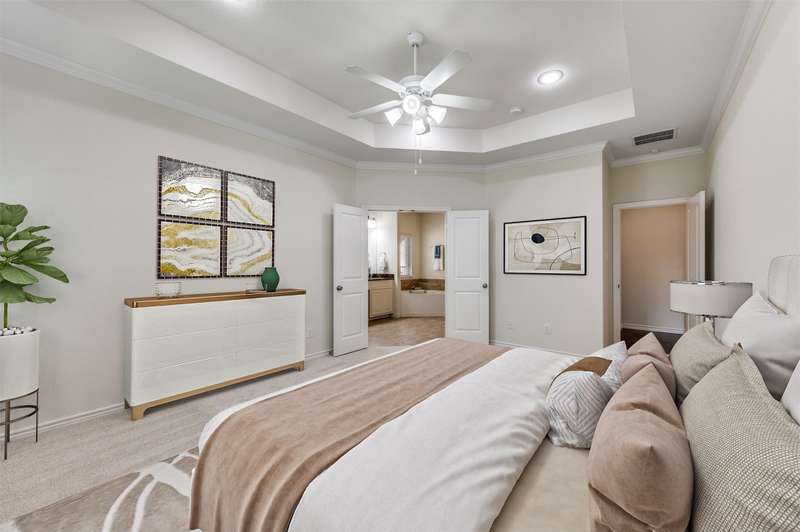 Welcome to the serene gated community of Eden Village and this beautifully upgraded French Traditional home, originally the community's model. From the moment you approach, youll be captivated by the charming curb appeal, leading you through a stately iron door into the entry. Inside, youll immediately notice the thoughtful designer details, light-filled spaces, soaring ceilings and a stunning open floor plan. Gleaming hardwood floors, plantation shutters, and exquisite lighting throughout make this home feel warm and inviting. At the heart of the home is a gourmet kitchen, perfect for casual meals or entertaining. It features granite countertops, custom 42in wood cabinetry, a beautiful wood vent hood. Stacked cabinets above the cooktop provide added storage, the cabinetry continues around the perimeter to the island, where the counter extends to create a comfortable bar seating area. High-end stainless steel appliances, including a Sharp Insight Pro microwave drawer, and a spacious walk-in pantry complete this chefs kitchen. The main floor also offers a lovely study with double French doors, ideal for work or quiet relaxation. The generously sized Primary Suite is a true retreat, complete with a luxurious soaking tub, a frameless glass double shower, two separate closets, and a cozy sitting area. Two additional spacious bedrooms are conveniently located in their own wing on the first floor. Upstairs, a fourth bedroom with a full bath provides privacy and versatility, perfect as a guest room, playroom, or media space. The well-appointed laundry room features abundant cabinetry, a quartz folding table, and a shuttered window with a peaceful view. This home is designed with energy efficiency in mind, boasting two 50-gallon water heaters and a number of other green features to keep utility bills low. Home is freshly painted with new carpet, this home is truly move-in ready. Come make this stunning property in Eden Village your home, where elegance and comfort await.