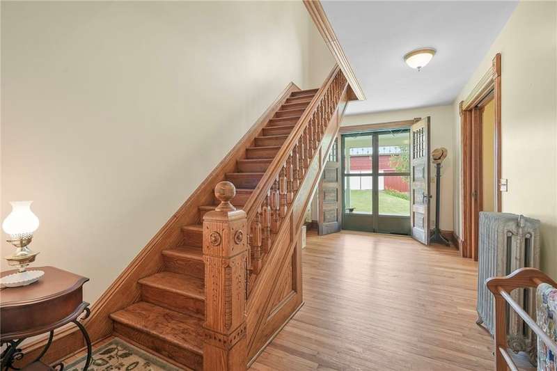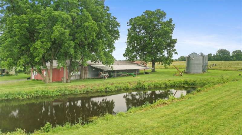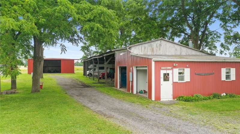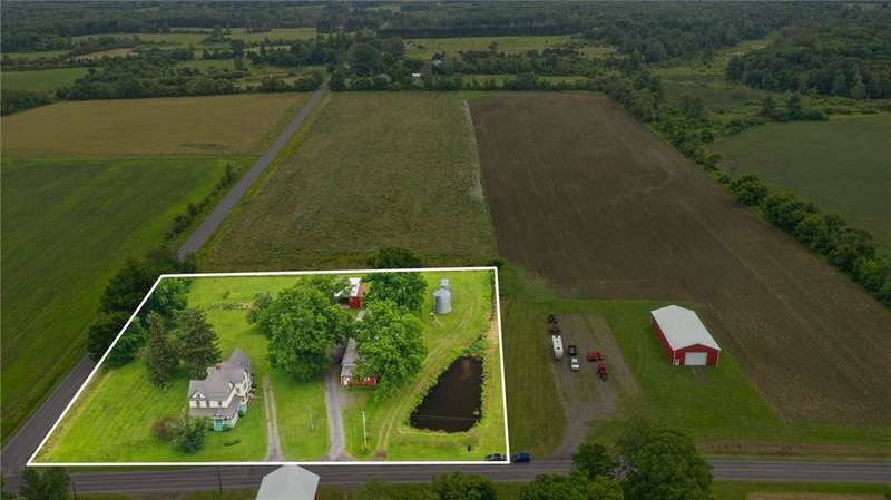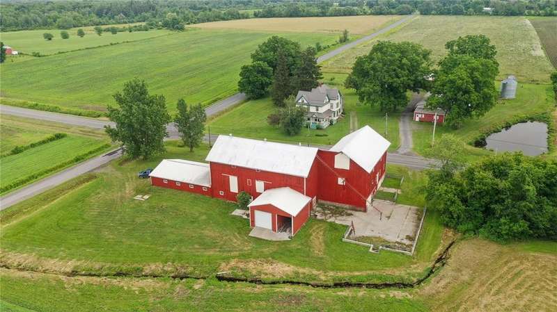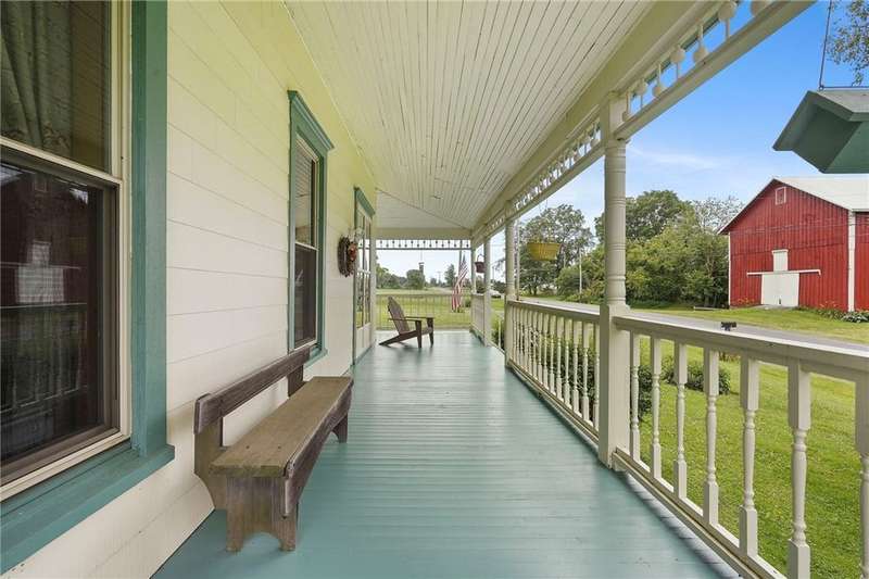 Set amidst the scenic beauty of New York's Southern Tier, this remarkable 3rd-generation certified organic dairy farm offers a rare and inspiring blend of heritage, craftsmanship, and opportunity. Spanning just over 5 acres-with an additional bountiful 8-acre field available for purchase-this property includes four primary outbuildings, a 5-bed/2 bath historic farmhouse, and a story deeply rooted in local agricultural tradition and meticulous caretaking. With over 3,000 square feet of living space, this home is a testament to timeless quality and thoughtful preservation. It features two staircases, soaring ceilings, hardwood floors, built-ins, pocket doors, and a ceramic-tiled fireplace that serves as the dining room's elegant centerpiece. Even the attic is a work of art! It's easy to get swept away by the home's sheer size and incredible detail?but equally captivating is the broader vision: a property rich in purpose and community. The farmhouse has been remodeled throughout the years to include newer large windows, insulation, roof, electric, and septic system-providing peace of mind and lasting comfort without compromising original character. Step outside to a wrap-around porch and tend to the garden with views of the fields and pond. Well-maintained structures include a two-story horse barn, machine/auto shop, long pole barn with garage and storefront space, chicken coop, and massive milking barn located across the road. Some have concrete floors, electric, and newer roofs, making them suitable for everything from homesteading to agricultural ventures, artisan businesses-an entrepreneur's dream. A property like this must be seen in person to be truly appreciated-one of the rare few that feels even more special off-camera and words cannot express. Also listed with 13.2 total acres, MLS #R1644559.