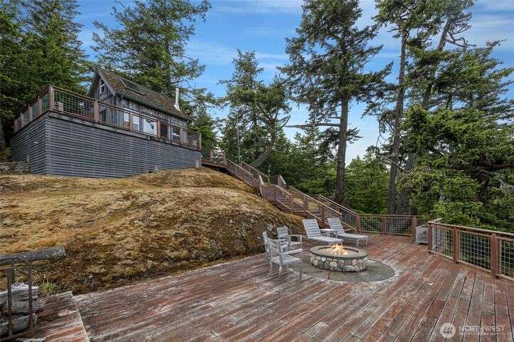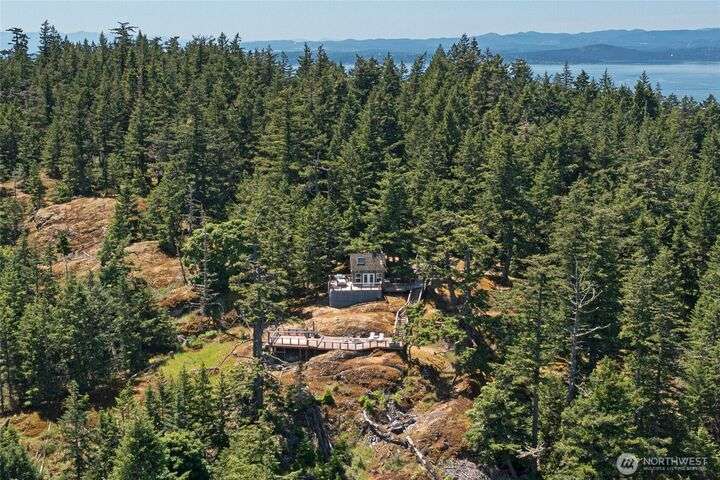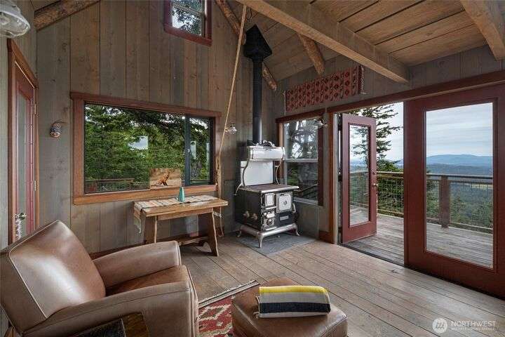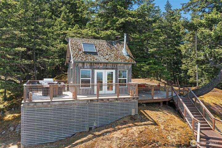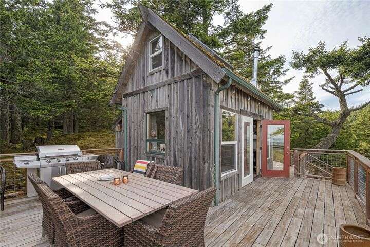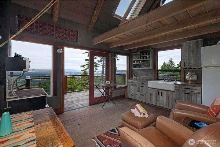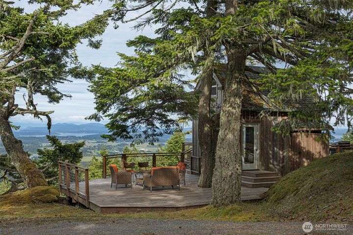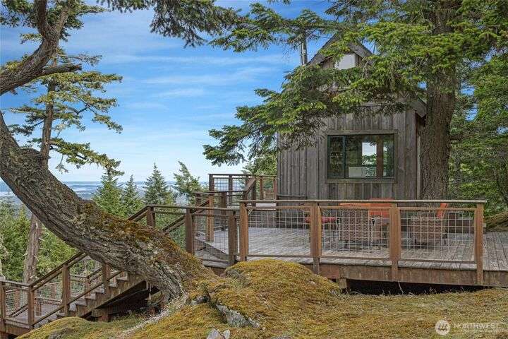 Perched atop Mt. Dallas on 17 acres of natural splendor, this off-grid retreat captures breathtaking views of San Juan Channel, Mt. Baker, and the vibrant valleys below - where each season paints a new masterpiece. Gaze out to glimpses of Haro Strait from your own multi-level tigerwood deck, perfect for dining, gathering around the firepit, or pitching a tent under the stars. The charming, solar-powered cabin offers warm hardwood floors, a wood cook stove, propane refrigerator, copper-accented sink, and a composting toilet - simple luxury in harmony with nature. With two access driveways and a completed soil test, this property invites you to enjoy weekends away or envision your future dream home in the sky.
