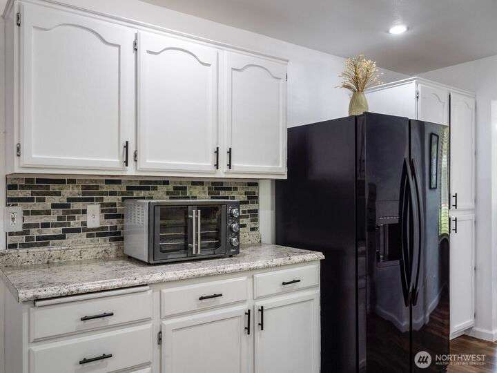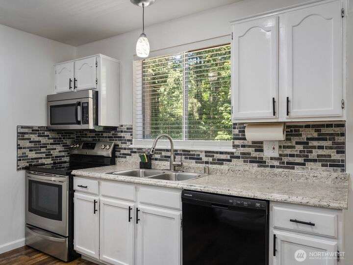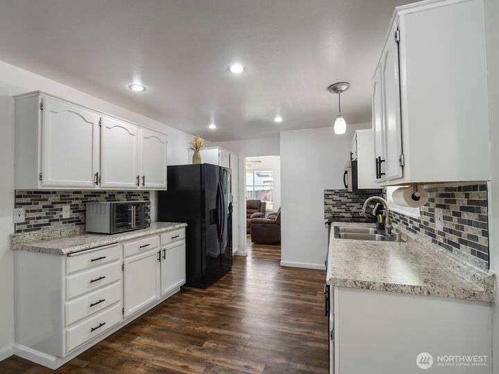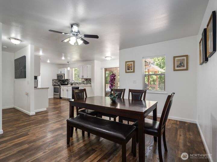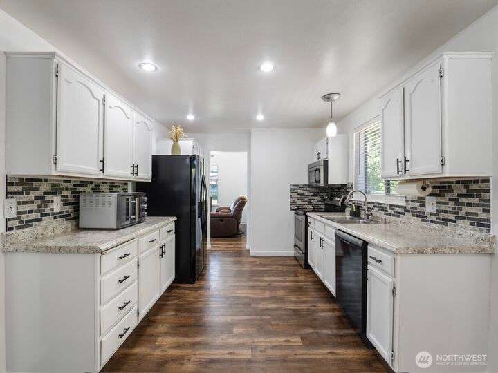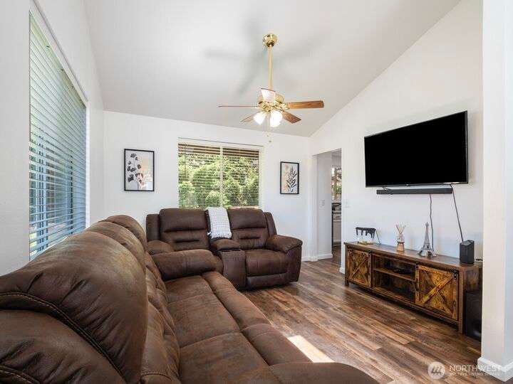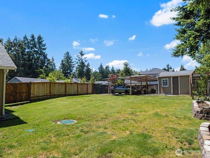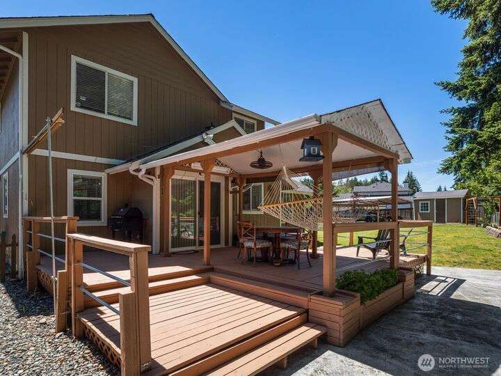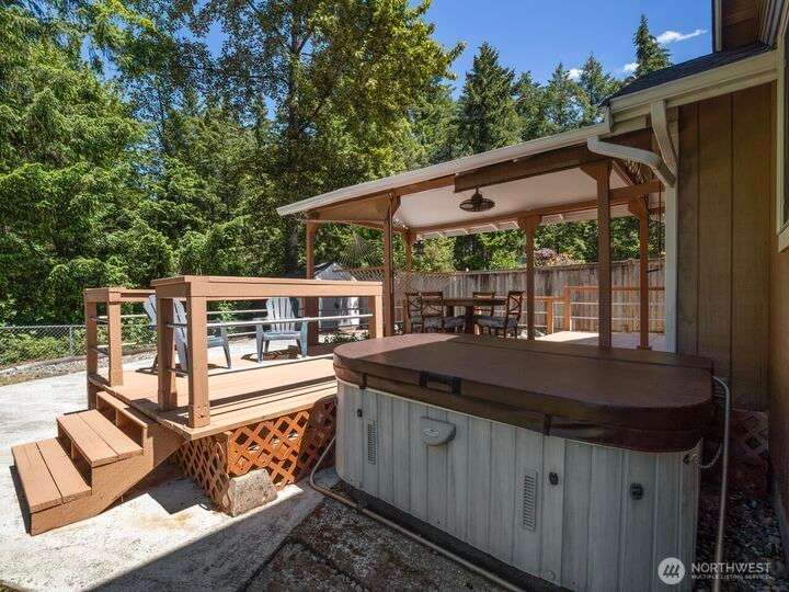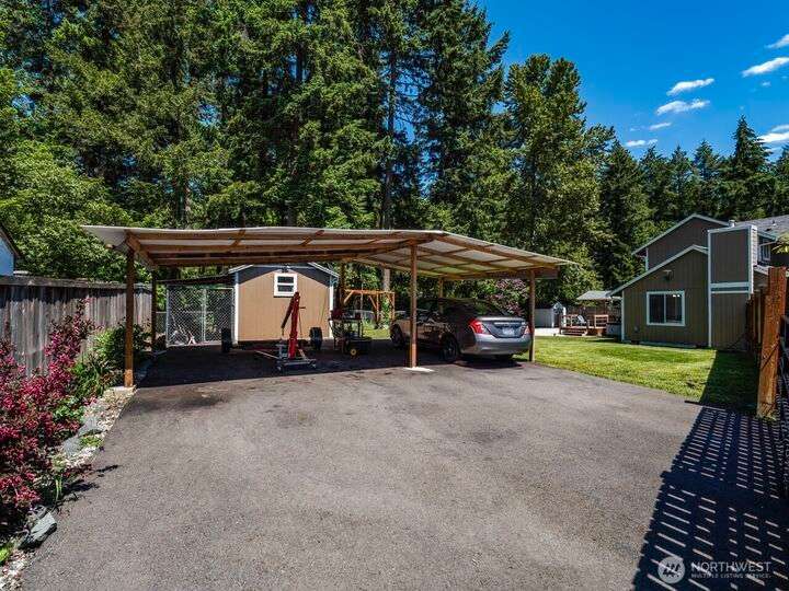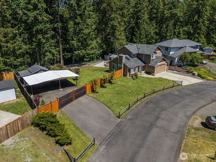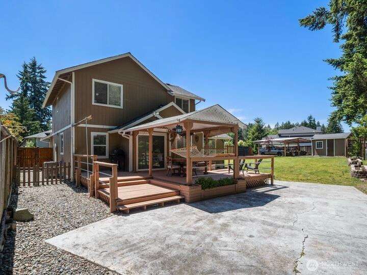 Lives much larger than its size and great for entertaining! This open concept home boasts 3 Bedrooms and 2.5 Baths with great flow from the sprawling Kitchen/Dining Room/Family Room space to the covered Deck, patio and Hot Tub. Indoors you have the year-round comfort of a heat pump with air conditioning and, outdoors, with the expansive near one-third acre, fully fenced lot, with 2 driveways, room for up to 12 vehicles or RV parking, plus electrical hookups for all your toys, this property achieves the perfect equilibrium of country living and modern-day conveniences. Don’t miss the greenbelt behind the property, which enhances the home’s feeling of privacy and serenity.