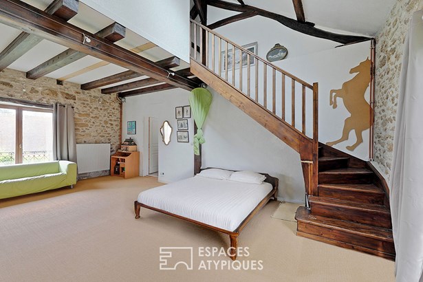 Corps de ferme rehabilitee et sa grange avec cour et jardin