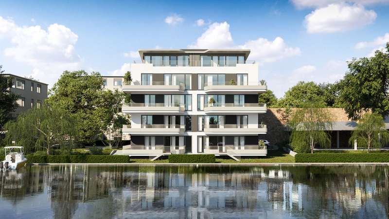 Planning permission has been granted for the apartment building on offer here with a total of 10 condominiums and it should be ready for occupancy by 2026. The property impresses with its exceptionally attractive location, well thought-out architecture and high-quality fittings in a modern solid construction. The total living space is approx. 1,059 m², on a plot of around 889 m². A total of 36 rooms are available, supplemented by 10 bathrooms and just as many balconies or terraces. All residential units have south-facing balconies and offer impressive water views. An average room height of approx. 2.60 m ensures a generous feeling of space. The apartment building will be handed over ready for occupancy, allowing the new tenants or owners to feel at home straight away. Each apartment is equipped with modern underfloor heating, which is operated via district heating, and all residential units also have a fiber optic connection for fast internet. The installed plastic windows with triple insulating glazing contribute to the high energy efficiency of the building. The interior of each apartment is dominated by high-quality parquet flooring, which, in combination with the underfloor heating, ensures a pleasant living climate. The residential units can also be optionally equipped with a guest WC or a bathtub. Accessibility is ensured by an elevator that connects all floors. For the convenience and mobility of future residents, 7 parking spaces are available. There is also the option of installing charging points for electric vehicles. This option is aimed in particular at environmentally conscious buyers who focus on sustainable mobility. The commission-free sales process means there are no additional brokerage costs for the buyer. All important documents and detailed information on this property can be provided on request. If you are interested in a viewing or further information, please do not hesitate to contact us. This property offers an excellent basis for modern and comfortable living in an attractive environment.