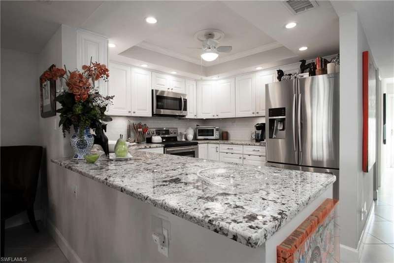Right in the heart of the Naples area and so close to everything the city has to offer! Totally renovated beauty boasting all luxury modern features and appointments. The owner has spared no expense in the reimagining of this residence. Contemporary style decor combined with rich colors and accessory pieces throughout. All solid surface tiled flooring with area rugs for comfort. The original screened lanai has also been glassed around the exterior and incorporated into the living area, offering an expanded sitting area (with a sleeper sofa provided for any overflow guests) off the living room but still taking advantage of the bright western exposure (plus the exterior glass doors can be opened to allow in fresh breezes). Every creature comfort has been provided to make a tenant's stay more convenient and enjoyable. Amenities include a heated pool, poolside sauna, shuffleboard courts & social club room. Conveniently located to fine shopping, dining, entertainment and the beach.