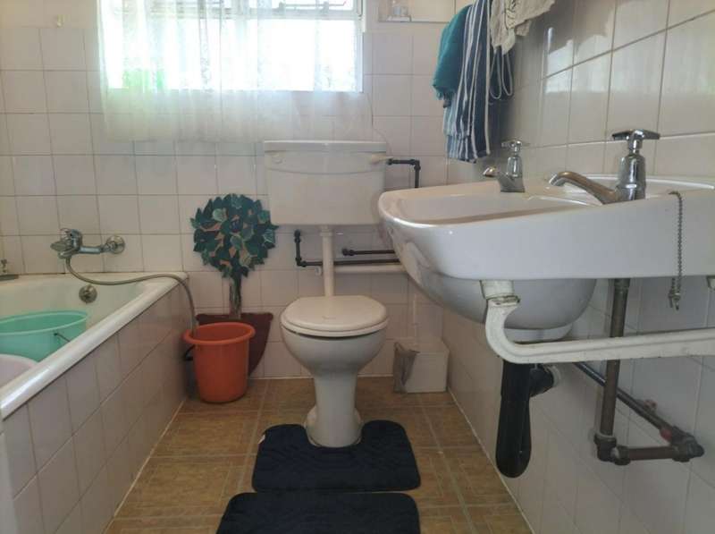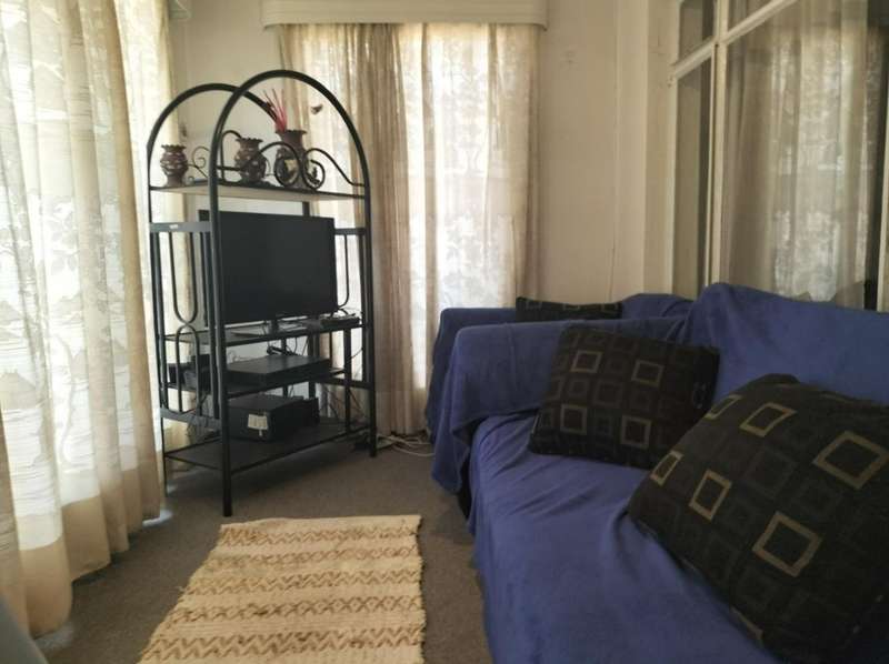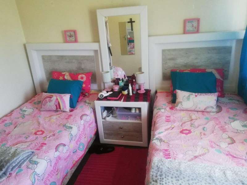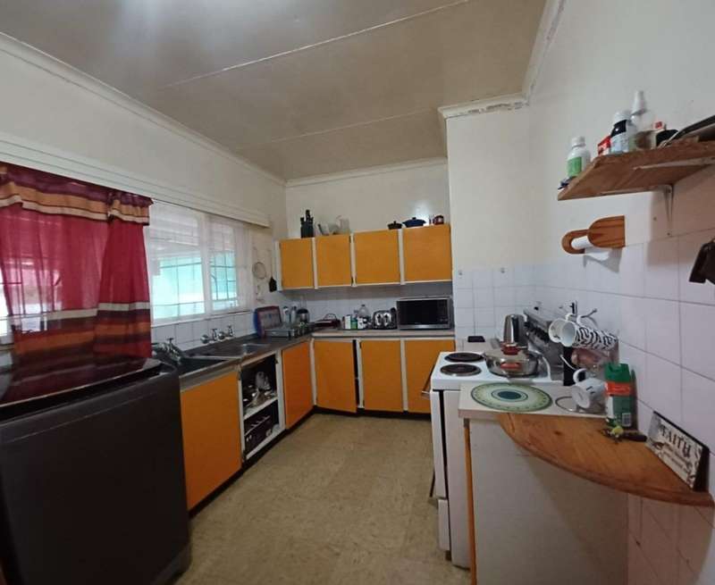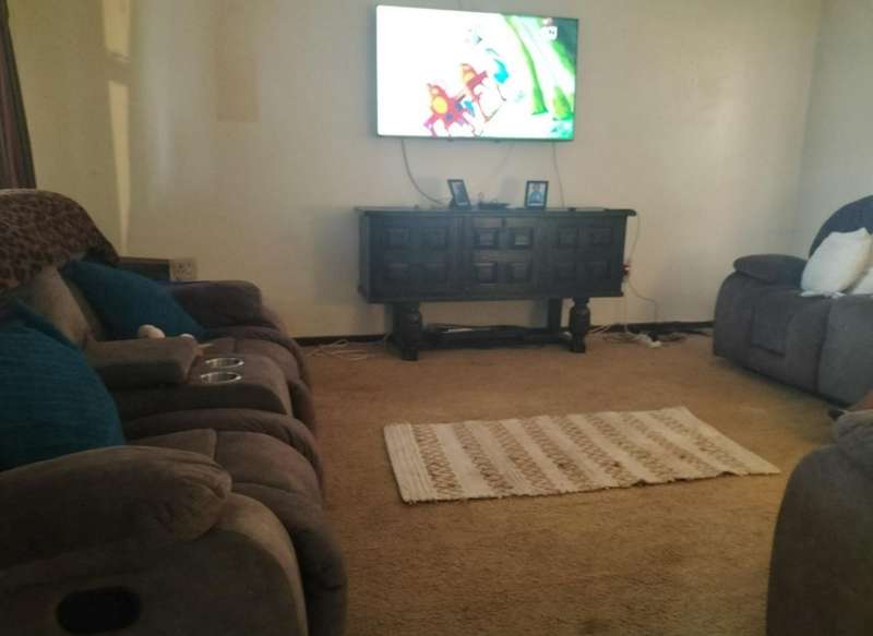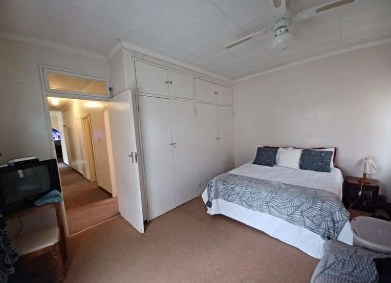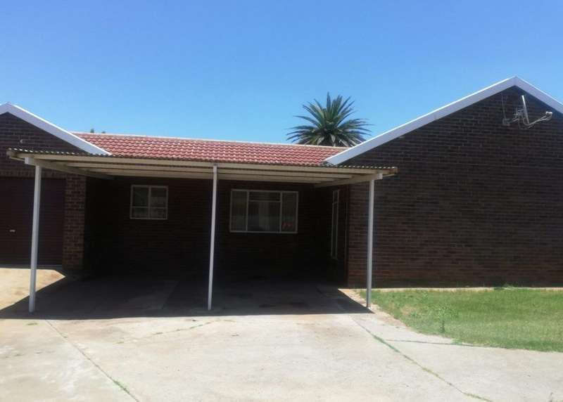 Ideal for those seeking their first home. At the front of the home is the first of three living rooms. With a secondary entrance from outside, this could be the ideal work from home office/study. Along with the lounge and dining room, all three are carpeted. Kitchen is comfortable is size, ample working space and even space for a small kitchen table. Wall to wall cabinets. Down the hallway are three bedrooms, all three looking out onto the front garden. Carpeted with built in cupboards. Two bathrooms are at the end of the hallway, first is fitted with bath, toilet, basin and the second – shower, basin and toilet. At the back of the house, alongside the kitchen is a storeroom, single garage and toilet. On either side of the back of the house are carports. The one at the back door has been closed on the side with shade net, turning it into a single carport, but serves much better as an outside entertainment area. A double steel carport is alongside the garage. Property is very low maintenance, enclosed on all sides with pre-cast walling. Large lawn area at the front of the home.