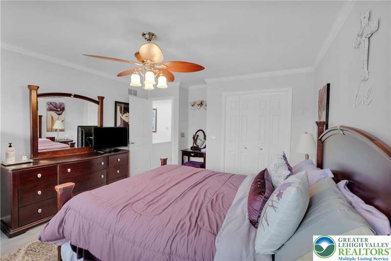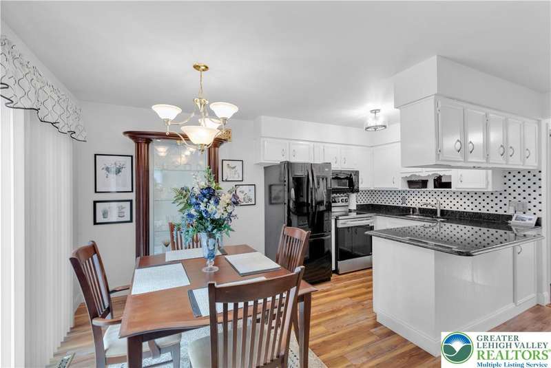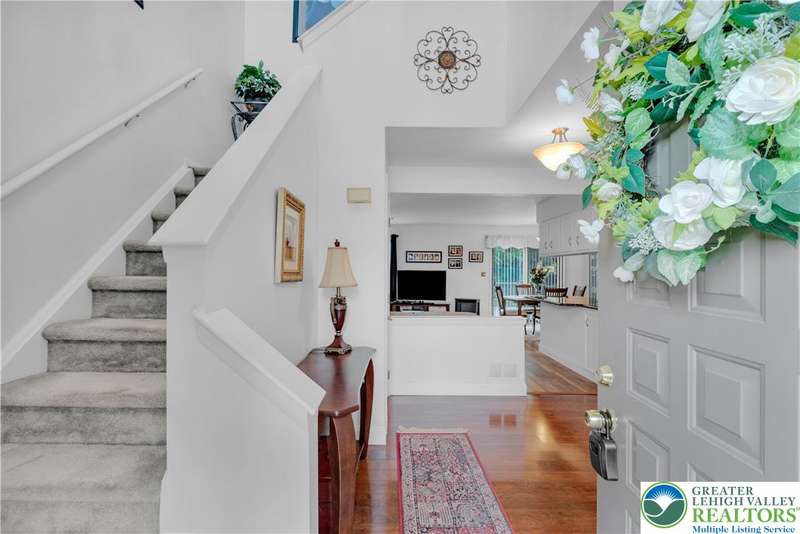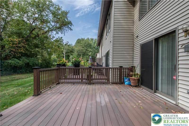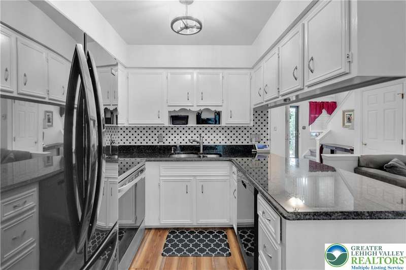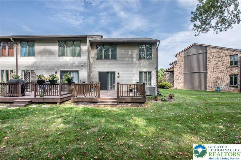 Affordable End Unit town home in Bethlehem's Eagle Trace community is now available. This well maintained home has 3 bedrooms, 1.5 baths, finished basement, one car garage and a large Trex Deck for outdoor enjoyment. The first floor features an open foyer with hardwood floors, a nicely updated eat in kitchen with granite counters, cozy living room off the kitchen and large half bath. The second floor has three bedrooms and an updated full bath with a double sink vanity and custom multiple shower head options installed. The finished basement has plenty of extra living space as well as the laundry room. New roof and driveway in 2025! This home is move in ready and in a great Bethlehem location close to shopping, schools, highways and more.