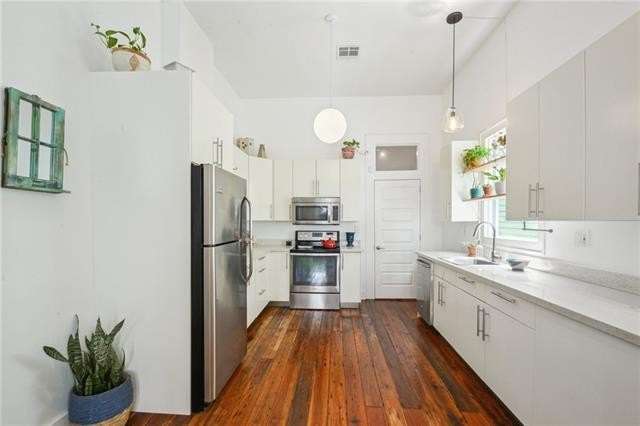 Step into this victorian style home with historic charm that blends seamlessly with contemporary upgrades. Originally built with timeless craftsmanship and fully updated in 2014, this 2-bedroom, 2-bath residence offers refined living just minutes from downtown, the Garden District, and all that Central City has to offer. This home qualifies for 0% down and a grant program through First Horizon. Inside, you’ll find soaring 12-foot ceilings, original hardwood flooring throughout, and an open-concept layout ideal for both everyday living and entertaining. The thoughtfully updated kitchen features quartz countertops, modern cabinetry, and energy-efficient stainless steel appliances—perfect for culinary enthusiasts who appreciate both style and sustainability. Both bedrooms feature a walk-in closet, essential for your wardrobe needs. Enjoy your own private outdoor retreat in the fully fenced backyard, where blooming jasmine and lush greenery create a peaceful, inviting atmosphere. Whether you're a first-time homebuyer or an investor seeking a turnkey property in a vibrant neighborhood, this home delivers exceptional value, character, and convenience. A rare opportunity to own a piece of New Orleans history—updated for modern living.
