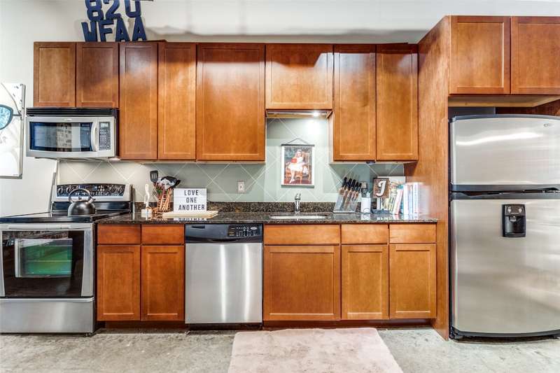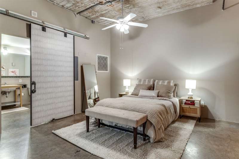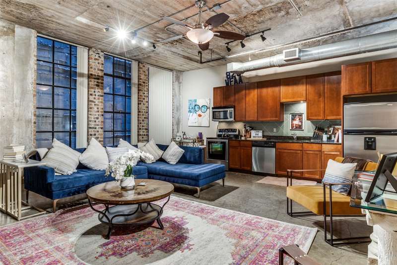 Trendy Urban Loft Living in the Heart of Downtown Dallas; a Walkers Paradise to Dallas Farmers Market, Dallas Arts District, Shopping, Restaurants, Entertainment, Klyde Warren Park, Movie Theater, and quick access to major highways + more. This Open Plan offers Concrete Floors and Columns, Original Brick Walls, and Exposed Ducts, making for a True Industrial Lifestyle. The Master Bedroom area offers a Large Wall-to-Wall Closet System. The Kitchen features Wood Cabinets, SS Appliances, Granite Counters, and Decorative Tile Backsplash. The Laundry Room is located next door to this condo, along with a separate 4x4 storage unit. One assigned, secured parking space in the secured underground parking garage. Enjoy the amenities this historical loft community provides: 24-hour staff-secured entrance, concierge, rooftop pool & BBQ area, fitness center, and media room. HOA also includes high-speed internet, water, trash, and sewer. To experience the Ultimate Urban Living Lifestyle, Schedule a Showing Today! A current tenant is residing there. The furniture will be different.
