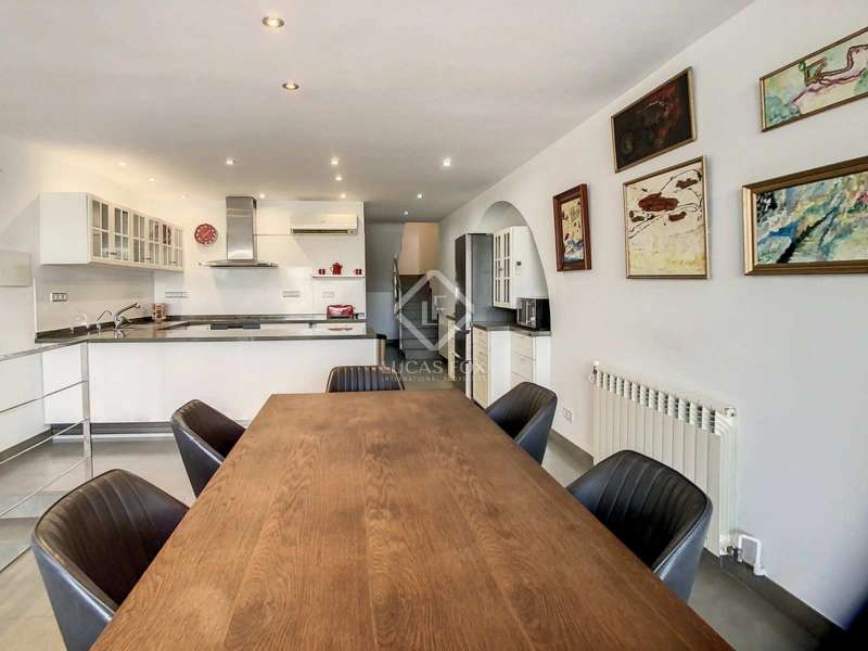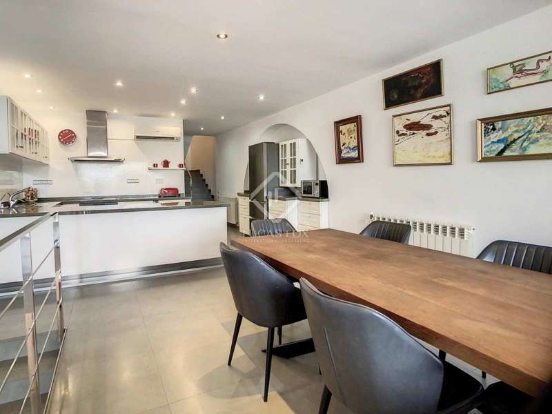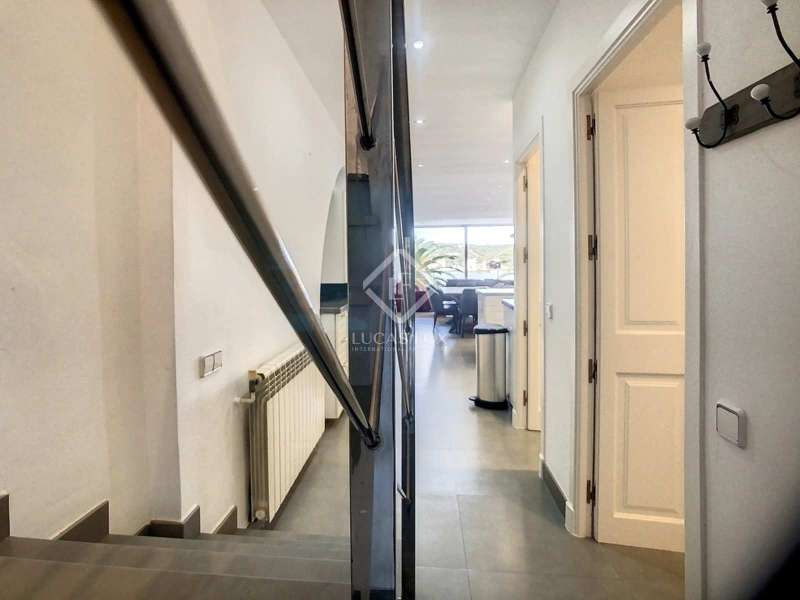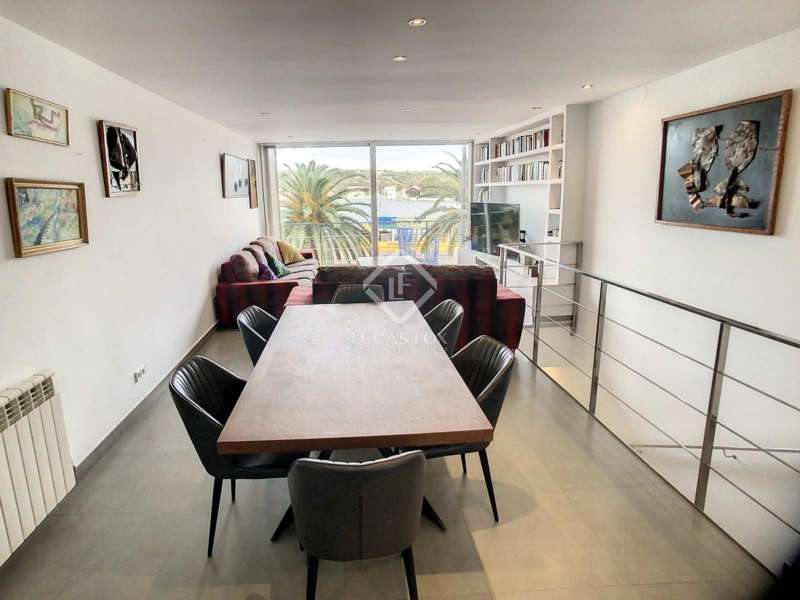 Lucas Fox presents this modern design house of 230 m² on a 103 m² plot with a 40 m² terrace in the port of Maó with access to the pier and moorings. The entrance is at the height of the seafront promenade of the port of Maó. The entrance staircase leads us to the main house. Another door in this hallway leads us to a large space that can serve as a premises, office or workshop on the ground floor. The property is distributed in two floors. On the first floor we are welcomed by a entrance hall that leads to the living-dining room with direct views of the largest natural port in the Mediterranean and the open kitchen, fully equipped, with views of the living-dining room and plenty of natural light through the large windows. From an open hall we have access to a bedroom with large closets, natural light and a full bathroom . On the second floor, we find the night area where we have the main bedroom with ample closet space and sliding doors that open to the large terrace of approximately 40 m² with spectacular views of the port of Maó. The full bathroom on this floor is shared with the other double bedroom , also with large closets. On a semi-floor, you have access to a covered area, a patio behind the house with views of the city wall. Here we find a large utility room with a storage room, a boiler room and a storage space for heating oil. The house has quality finishes after a renovation in 2008 with very elegant details and double-glazed windows. It also has heating and hot-cold splits in all rooms. Returning to the entrance of the house, we find on this ground floor an study, a kitchen, a bedroom, a bathroom and a work area, as a workshop, where many tools are currently stored and you can see how the space could be used with Its independent entrance from the street through a glass door. A unique, elegant property , with special details to live in all year round or spend time with family and/or friends. Contact us for more information or to arrange a visit.