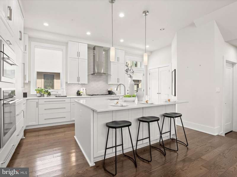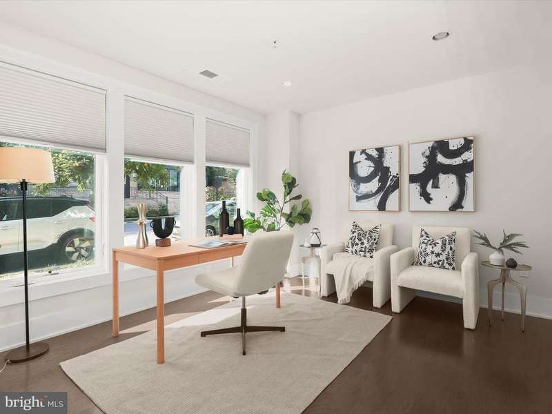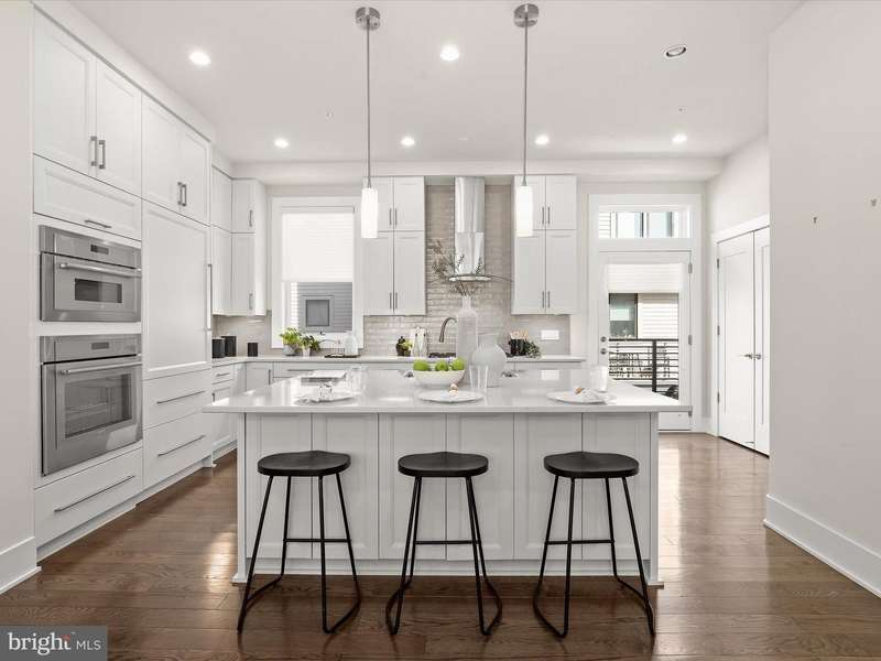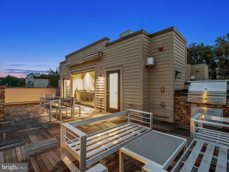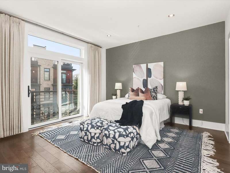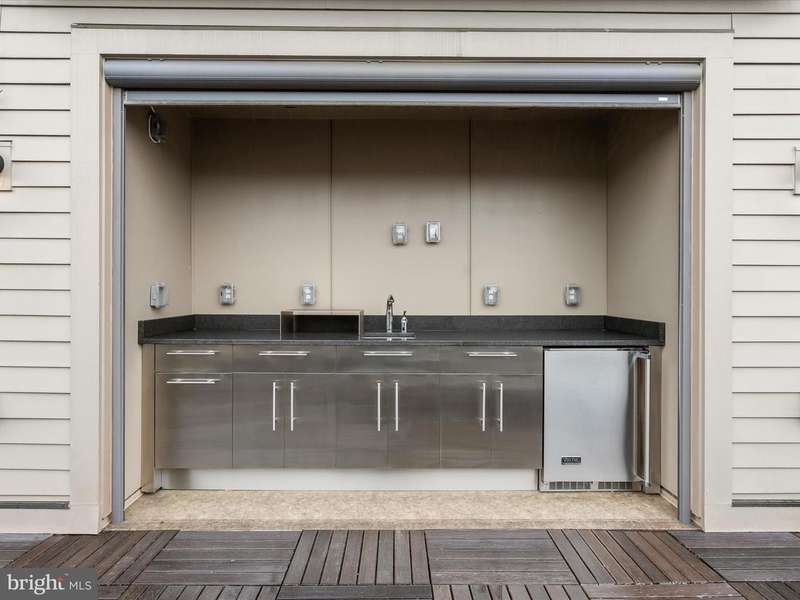 Introducing this exceptional four-level, elevator townhome in the sought-after Grosvenor Heights community in Bethesda, offering four bedrooms, three and a half bathrooms, and remarkable details at every turn. Built in 2019 by award-winning builder EYA, this home provides ultimate convenience with an elevator serving each level, including the rooftop terrace. Step inside the foyer where beautiful hardwood floors and a neutral color theme set the tone that continues throughout the home. The entry level includes a bedroom with a private ensuite bathroom featuring a walk-in shower, ideal for guests, those seeking a quiet retreat, or a home office. This level also provides access to the rear two-car garage. Upstairs, the open concept main level boasts tall ceilings and abundant natural light from oversized windows. The gourmet kitchen is a chef's dream, appointed with high-end appliances including a five-burner gas cooktop, range hood, built-in microwave and wall oven, as well as a hidden refrigerator and dishwasher. Quartz countertops, a tile backsplash, soft-close cabinetry with under-cabinet lighting and pull-out storage, and a center island with seating complete the space. Step onto the balcony off the kitchen for morning coffee or casual dining. The adjoining dining area is ideal for hosting gatherings, while the living room features a cozy gas fireplace and a discreet wet bar for coffee or cocktails. A half bathroom on this level adds convenience. Up one more flight, the bedroom level showcases the primary suite with two walk-in closets and sliding glass doors with custom motorized curtains. The luxurious ensuite bathroom offers a dual-sink vanity and oversized frameless shower with bench seating. Two additional bedrooms, a hall bathroom, and a laundry closet complete this level. The top level is entirely dedicated to the rooftop terrace, designed for both relaxation and entertaining. Highlights include a motorized retractable awning, wet bar tucked behind a garage-style door, gas fireplace, built-in grill, and views of the surroundings. Every detail reflects thoughtful craftsmanship, from custom closet built-ins to modern lighting and finishes throughout. Enjoy this convenient location minutes from the Grosvenor-Strathmore Metro Station, I-495, I-270 and other commuting roadways. Explore the local surroundings, with walking and biking trails, nearby Fleming Park, Wildwood Shopping Center, The Music Center at Strathmore, downtown Bethesda and more. Tucked among lush greenery, this serene setting offers an unparalleled lifestyle close to everything you need. Seller would consider a rent or rent-to-own option.