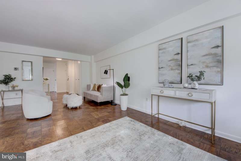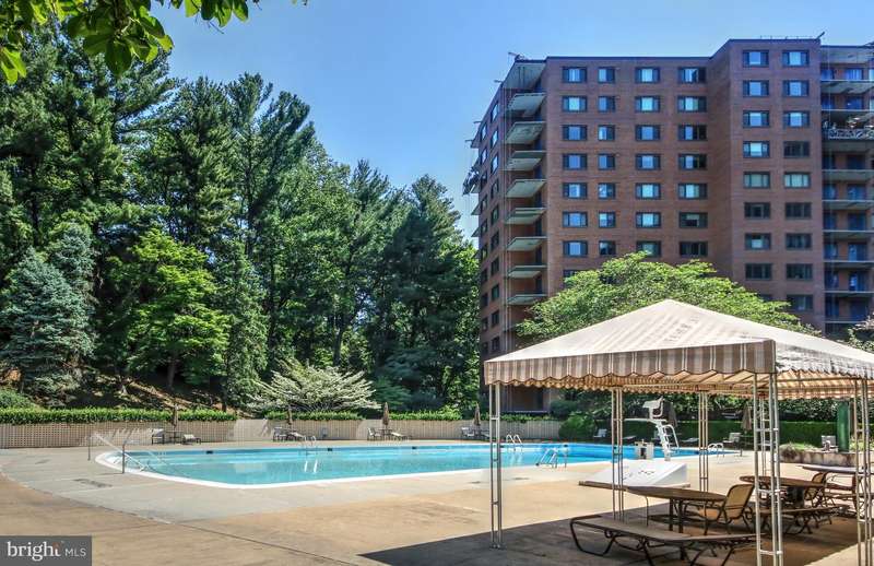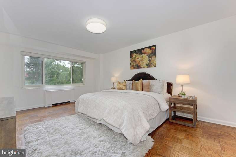 WOW! Look at this new price for a lovely two-bedroom condominium at the Towers, complete with balcony and garage parking. #601E offers the perfect blend of modern design, tranquility and everyday convenience. This is a floor plan that can easily accommodate a variety of uses and styles. It is thoughtfully laid out to provide a calm and comfortable retreat from city life (and maybe just life in general). The balcony is at tree level and is ideal for morning coffee or an evening beverage, and the overall feel is one of comfort and simplicity. The kitchen is well-designed with more cabinets and storage than most larger homes and it is anchored by a large window at one end. The primary bedroom is generous in size and comfort and has an en-suite bathroom with curbless shower allowing maximum accessibility. The second bedroom enjoys good light and allows additional options for use: a private guest room, a den, a home office or some combination thereof. Additional features include a guest bath, a welcoming entry foyer, a large hall closet, parquet floors, and a separately deeded garage parking space.Located in the Wesley Heights neighborhood, the amenities include a sparkling outdoor pool, tennis court, grocery store, hairdresser, workout room and in-house library! In addition, there is full time, professional and courteous staff to cover everything from the front desk to valet parking. Be sure to explore the great restaurants and shops nearby on New Mexico, at Cathedral Commons or in Glover park. Whether you are making a transition from a larger home or moving up from a smaller one, 601E will help you create your best life.
