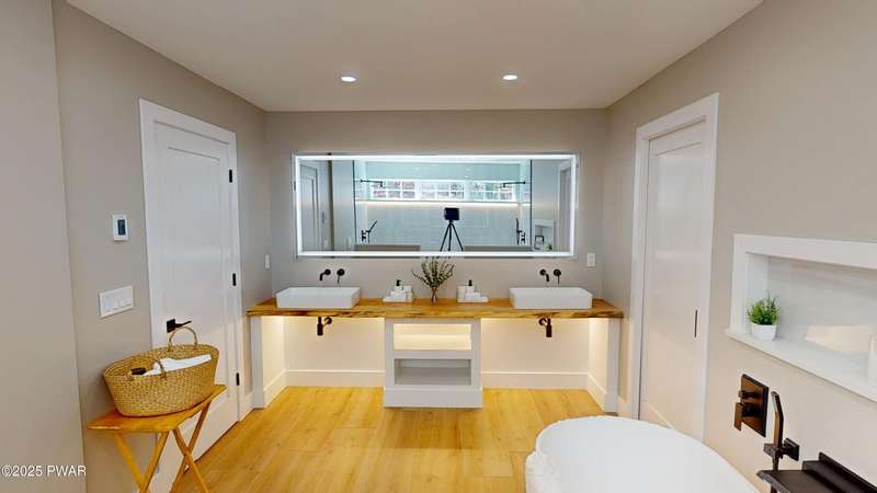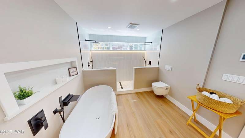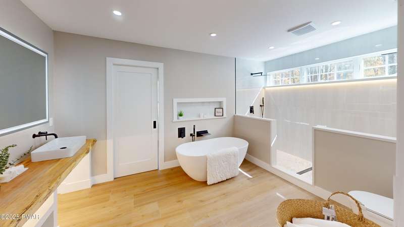 Brand New Custom Built Ranch featuring a fully finished walkout basement with kitchen! This 3 bedroom 3.5 bath home is thoughtfully crafted from foundation to finish; blending modern comfort, energy efficiency, and refined luxury.The main level offers an open-concept layout with vaulted ceilings, abundant with natural light, showcasing custom wood trusses, premium hardwood flooring, an elegant propane fireplace, mini-split unit, and two finished lofts, offering ample organizational storage. The modern chef's kitchen features a grand entertainer's island, eye-catching contemporary countertops, gourmet propane range and oven, stainless-steel appliances, custom cabinetry and more! The luxurious primary suite features a dual custom 10' tiled shower, soaking tub, a double vanity, oversized mirror, tank-less toilet and an adjacent oversized laundry/utility room. The entrance foyer features French doors, custom seating/storage unit, half bath and closet. Two additional bedrooms and a full bath complete the main level.The fully finished basement is adaptively designed with an open concept kitchen/living area with mini-split unit, two bonus rooms, laundry and full bathroom. Private entrance/walkout to thoughtfully designed backyard area.Oversized attached garage features epoxy floor and EV charging station. Exterior highlights include a premium paved driveway, stamped concrete walkway, covered front porch, large deck overlooking the yard and meticulously designed landscaping.Premium finishes and seamless designs are featured throughout this Must See New Construction!Experience every carefully crafted detail by scheduling your private tour in the prestigious amenity-filled Hemlock Farms today!