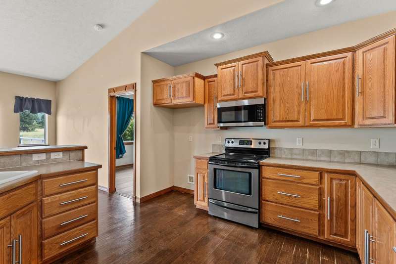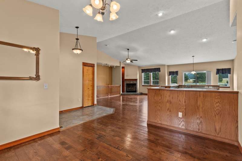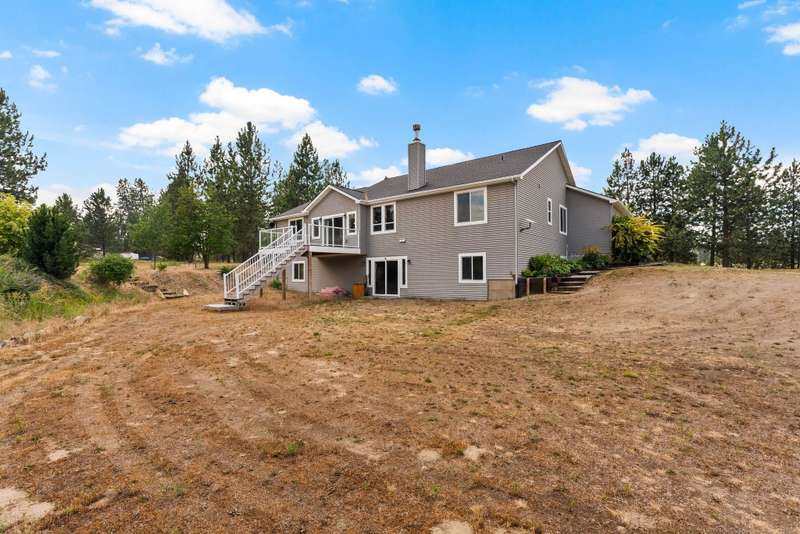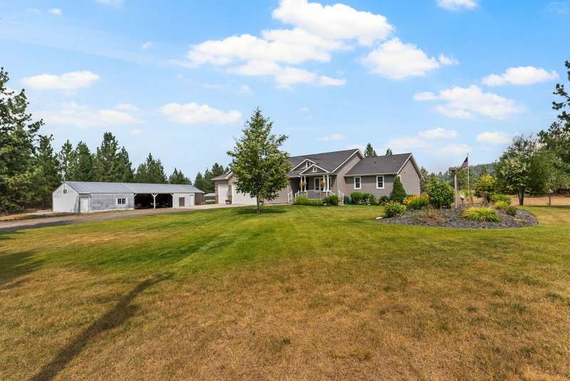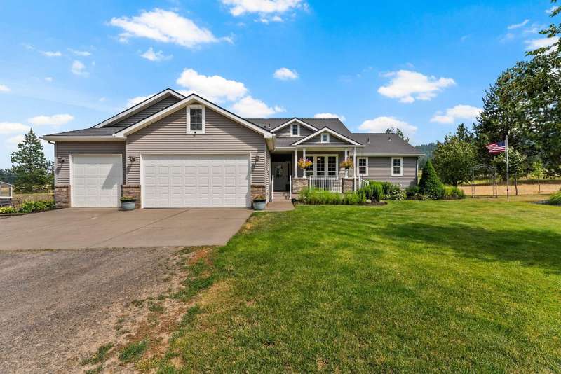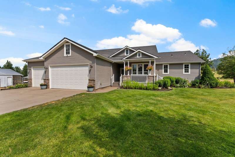 Retreat to your own private oasis where nearly 5 acres of serenity await. Surround yourself with nature & mountain views in this 4 bed, 3 bath rancher built by King & King in 2006. Discover tall cathedral ceilings, a wood fireplace, natural woodwork & open floor plan to host all your favorite people. Enjoy BBQs, sunsets & relaxation from your deck right off the living room. Experience the luxury of main floor living where your daily routine unfolds effortlessly on 1 convenient level. The spacious primary suite features sweeping views, a jetted tub, walk-in closet & newer LVP floors. Bring your vision to life by putting your stamp on the partially finished daylight walkout basement, & create your perfect home. Find comfort year round with 6” efficient walls & updates including newer furnace & heat pump, water heater & well pressure tank. Outside find a dedicated shop for all your projects & a greenhouse equipped with water & power to nurture your gardening dreams. Harmony, space & views beckon. See it today!