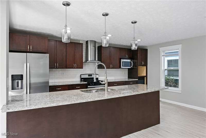 Beautiful Ohio City colonial with 3 FULL bathrooms, ready for immediate occupancy. Over 2,000 square feet of living space, first floor laundry, and a 2.5 car garage, this home truly will have everything you've been looking for. The welcoming front porch that has recently been rebuilt is the perfect place to start your morning with a cup of coffee. The first floor is spacious and a true open concept. Brand new LVP flooring and neutral paint throughout. The 10' island is ideal for entertaining. Upstairs is the freshly painted primary bedroom with vaulted ceilings, a large walk-in closet, and an en suite full bath. Two additional well-sized bedrooms round out the second floor with a shared bathroom. You'll love the fully fenced in backyard that has a deck and plenty of room for your pup to play. This property also features new vinyl siding on the main house. Ideal location, just north of Bridge Ave. and walkable to neighborhood favorites.