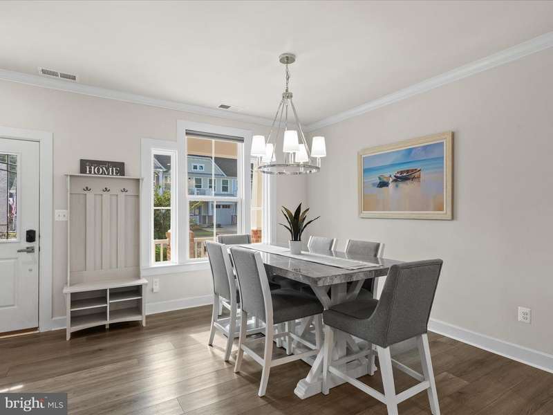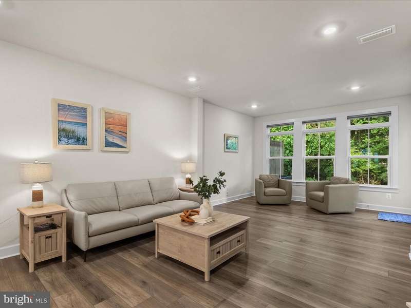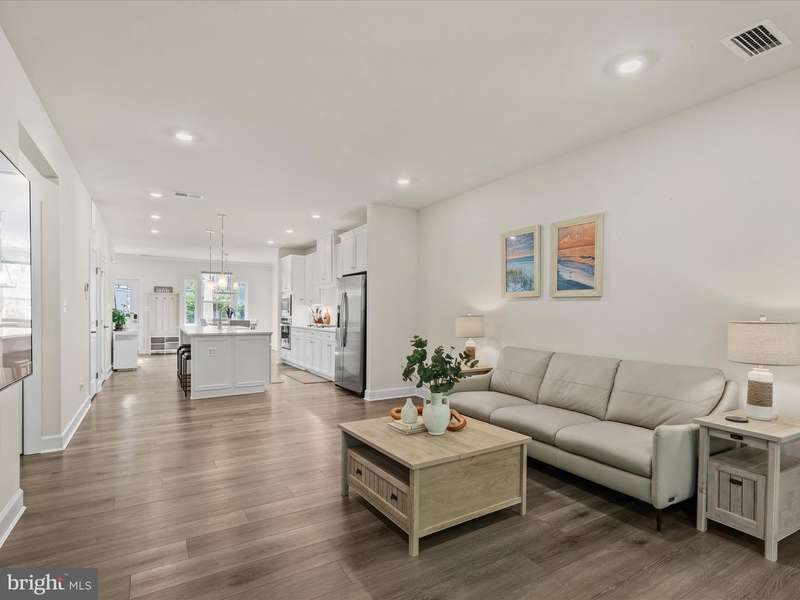 Welcome to 22198 Dune Circle, a gracious townhome villa offering two primary suites, four bedrooms in total, and three and a half baths, all set within The Peninsula, Delaware's premier gated resort community on the Indian River Bay. This residence blends coastal style with everyday comfort, thoughtfully designed with modern decor and upgraded finishes to create an inviting retreat perfect for relaxing or entertaining. The light-filled foyer opens to a welcoming dining room, setting the tone for the home's airy flow. At the heart of the main level, the gourmet kitchen shines with 42""Â? white cabinetry, quartz countertops, farm sink, upgraded soft-close cabinetry, tile backsplash, under-cabinet lighting, and stainless steel appliances including a gas cooktop, wall oven, built-in microwave, dishwasher, and French door refrigerator with ice maker. Pendant lighting above the island completes this polished space. The open-concept living room, complemented by an adjacent sitting area, offers an effortless flow to the private patio, perfectly framed by mature trees for a serene backdrop. The main-level primary suite provides a true retreat, featuring a spacious walk-in closet, a ceramic tile shower with frameless glass door, a double quartz vanity, and elegant lighting. A convenient laundry center and powder room complete the main floor for a comfortable single-level lifestyle. Upstairs, three additional bedrooms, each with a walk-in closet, one with an ensuite, offer plenty of space for family and guests. French doors open to a versatile family room, while sliding doors extend the living space to a second-level balcony. Living at The Peninsula means enjoying an unmatched resort lifestyle. Community fees include lawn care, snow removal, trash service, Verizon Fios high-speed internet, HD cable, and 24-hour security. The centerpiece is the Jack Nicklaus Signature Golf Course and clubhouse, offering indoor and outdoor dining, a wine and billiards room, golf lounges, pro shop, putting greens, and bocce courts. Lakeside Village features a fitness center, full-service spa, game room, indoor and outdoor pools, including an adult-only heated pool, wave pool, and kiddie splash area, along with tennis, pickleball, miniature golf, a dog park, and a private bay beach. All of this is just 13 miles from downtown Lewes and the Rehoboth Beach boardwalk. Don't miss your chance to own this thoughtfully designed villa with luxury features and unrivaled resort amenities, your best coastal lifestyle awaits at 22198 Dune Circle.