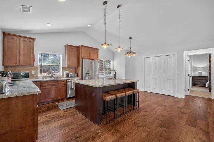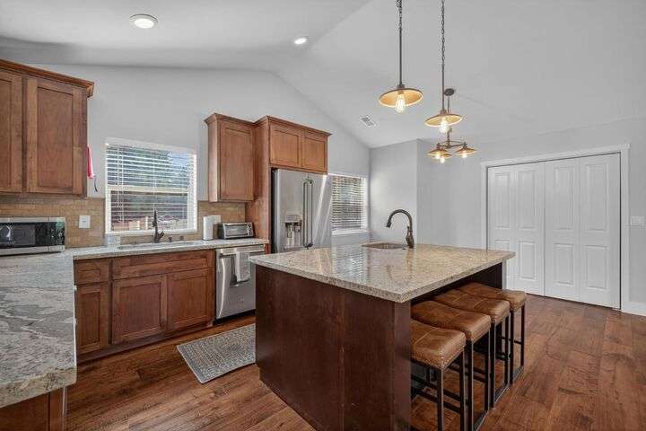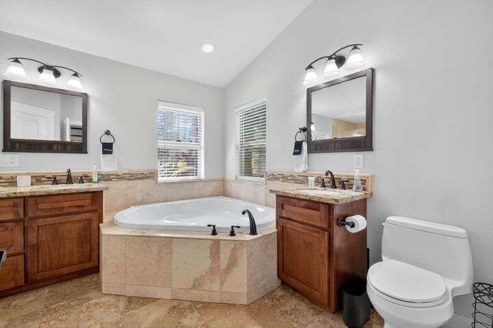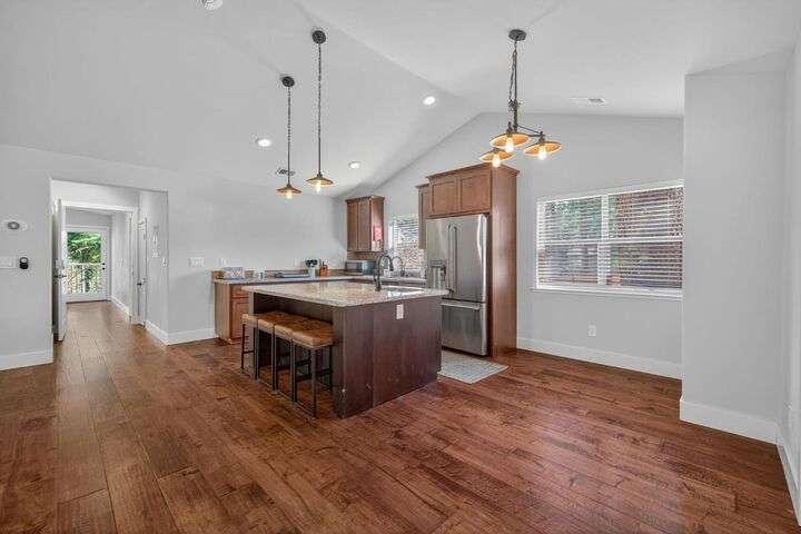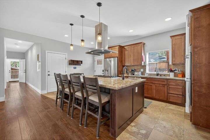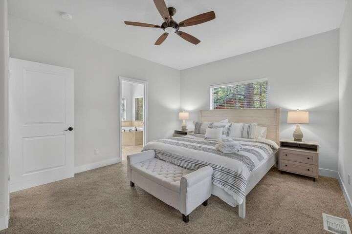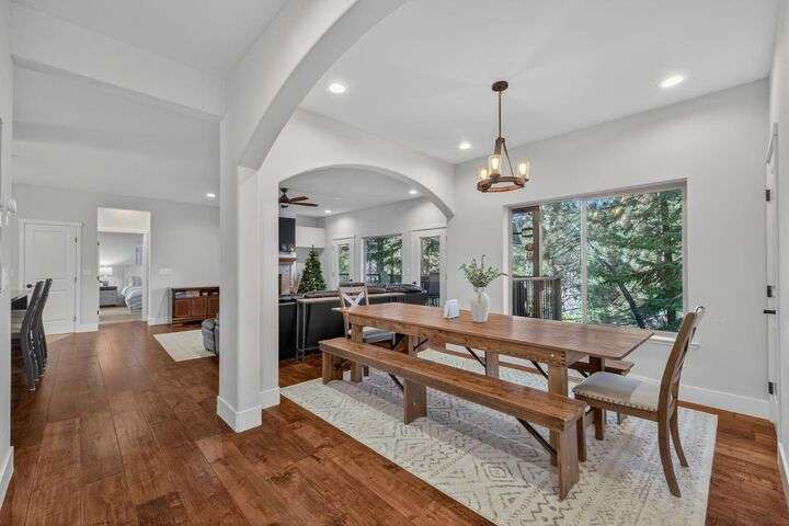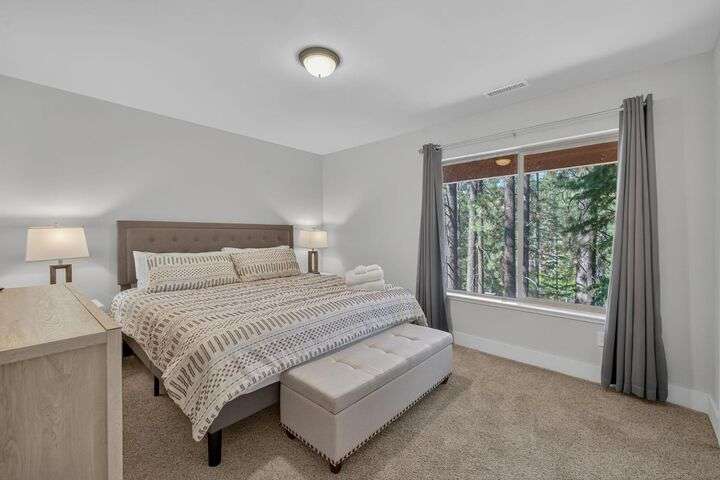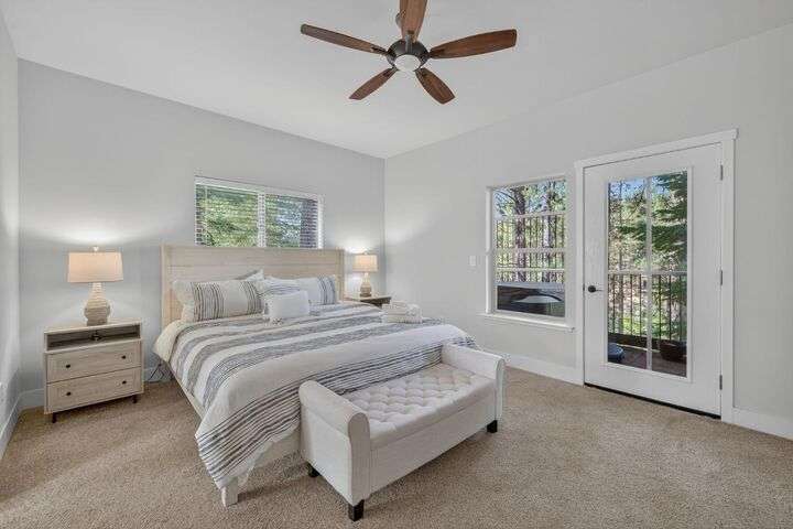 Welcome to 1513 Cree St! A newer constructed 6 bed, 5 bath, 4,144 sq ft Tahoe retreat built for entertaining and comfort. This home is PERFECT for large groups and offers 2 open-concept living/kitchen areas, each with forest-view decks and hot tubs. The main and upper levels feature nearly identical primary suites with spacious ensuites including jetted tubs and showers. Additional highlights include 4 guest bedrooms, a lower-level game/TV room, and a versatile 2-car garage with space for a gym or gear storage. With 3 decks, multiple gathering areas, and plenty of room for family and friends, this property captures the Tahoe lifestyle. Ideally located near Pioneer Trail with quick access to Heavenly, Sierra, and endless biking/hiking trails. Furnishings negotiable.