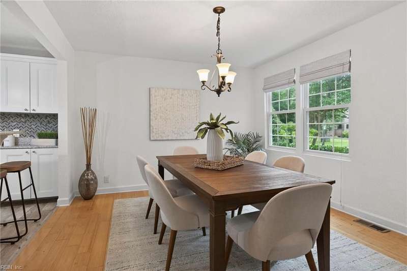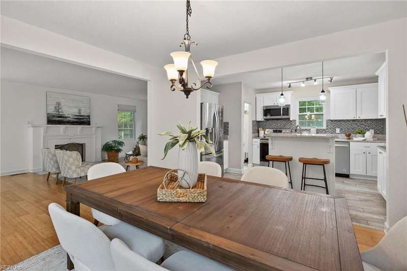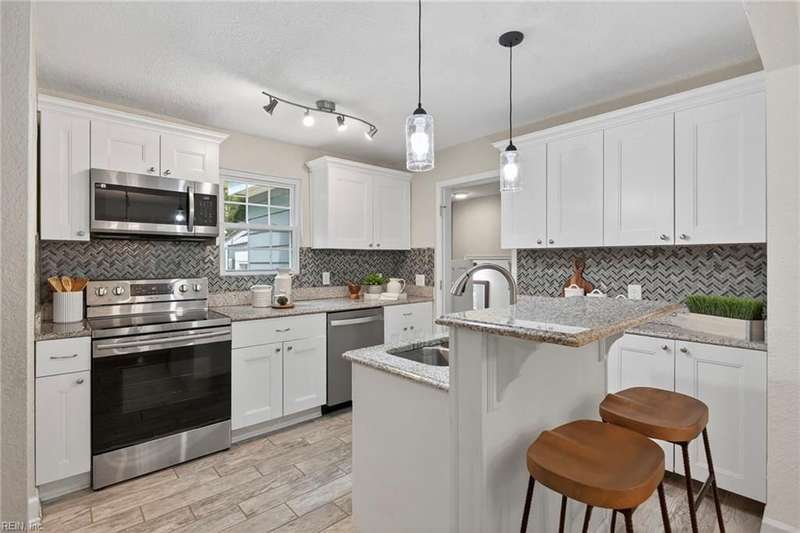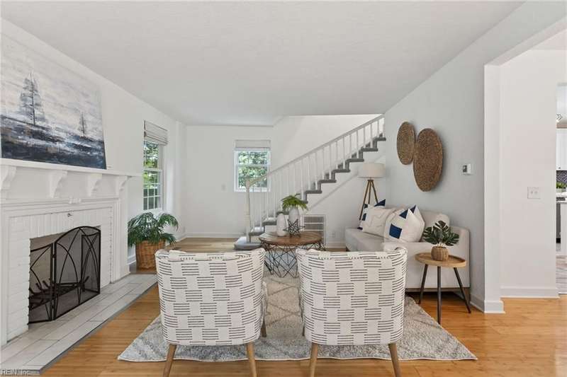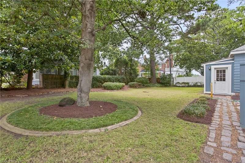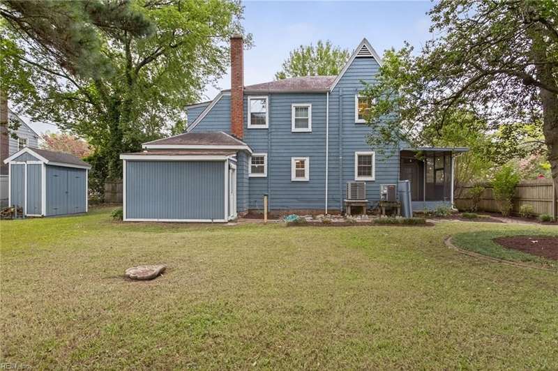 Charming 4 BR/3 B Colonial home tucked in the back of Colonial Place on an oversized lot. The open flr plan feat. LR w/decorative FP, lg DR, sunroom, screened porch, laundry & 1st flr BR & bath that could be an in-law suite/office. The renovated kitchen has white cabinetry, granite counters, tile backsplash, SS appliances & large pantry. Upstairs, the primary suite offers updated ensuite bath w/tiled walk-in shower, while 2 addl. BRs & bath complete the 2nd flr. The exterior boasts prof. landscaping, a spacious, fenced backyard w/mature landscaping, a tranquil koi pond w/fountain, storage shed & sprinkler system served by well. Highlights incl. replacement windows (2021), dual-zone HVAC (1 zone 2025), new carpet, fresh paint, bamboo flrs, new vapor barrier & well-maintained slate roof. Located in Granby El, Blair Middle & Maury High School districts. Just minutes from North Colley, Ghent, Downtown, ODU, CHKD, Sentara, military bases & interstates. Asumable flood ins. of $879/yr.