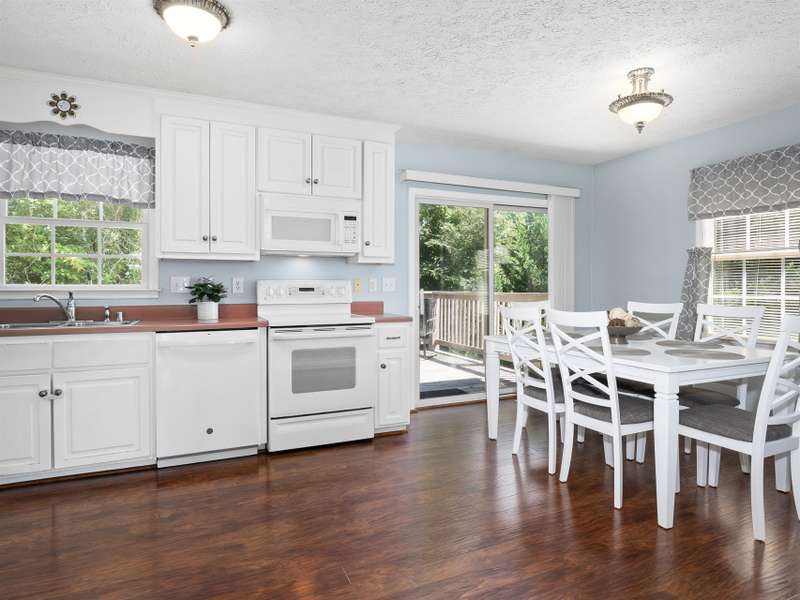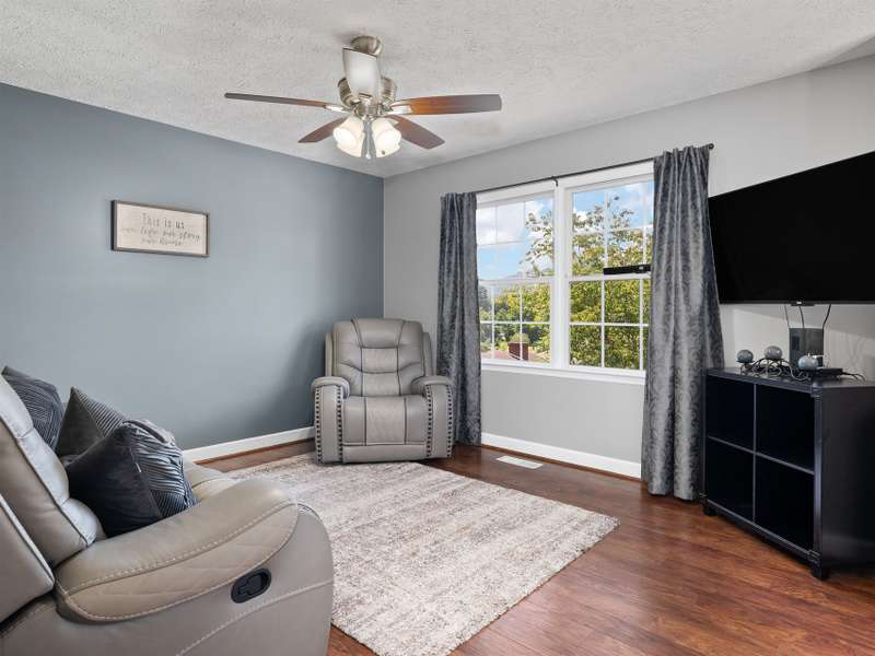 Immaculate split-foyer home on 0.214-acre private lot at desirable Rhoda St, boasting recent updates including a new roof and HVAC system. This charming residence features an open floor plan seamlessly connecting the kitchen, living, and dining areas, perfect for modern living. The main level offers three spacious bedrooms and two full bathrooms, with a mix of laminate, carpet, and vinyl flooring throughout. The finished basement includes a cozy family room, a convenient laundry/storage room, and an oversized two-car garage. Enjoy city water/sewer and energy-efficient vinyl windows. Step outside to a peaceful, private rear patio, ideal for relaxation or entertaining, complemented by two storage outbuildings for extra space. This move-in-ready home blends comfort, style, and practicality in a serene neighborhood setting, perfect for families or anyone seeking a well-maintained property with modern upgrades.