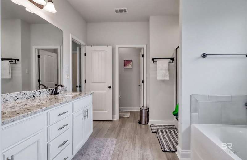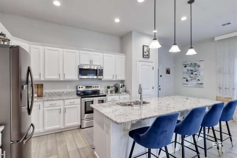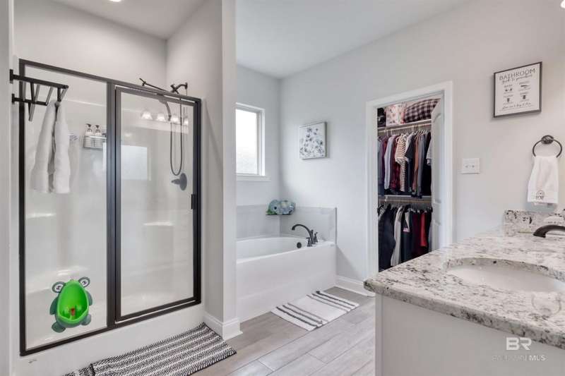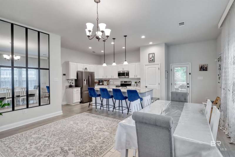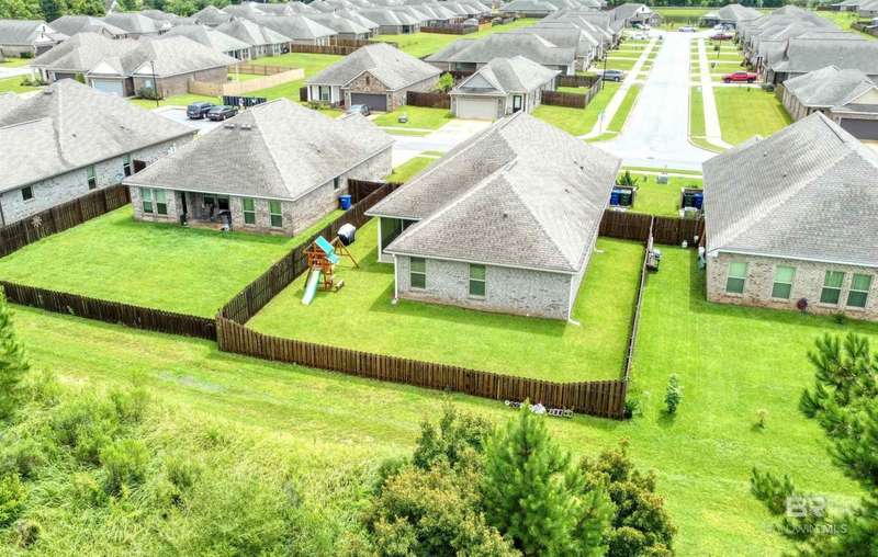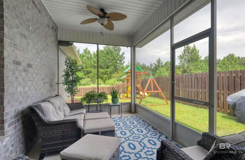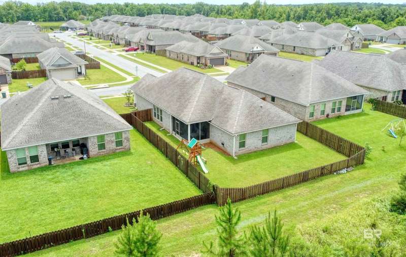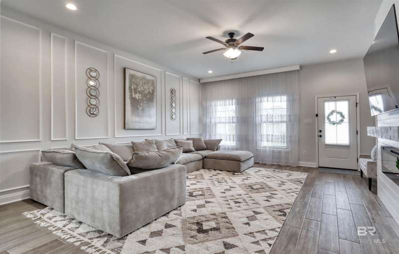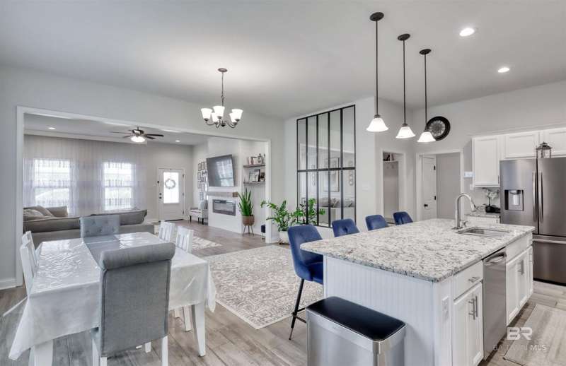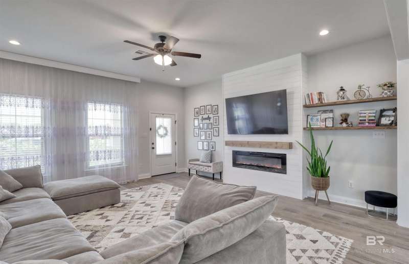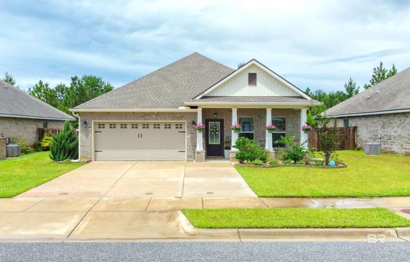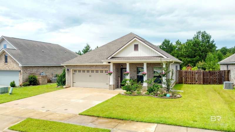 This home is eligible for USDA loan. Stunning Gold Fortified Certified home in Majestic Manor neighborhood. This 4-beds, 2-baths home features open and split floor plan with stylish European touches throughout. The brick and Hardie exterior offer timeless curb appeal, complemented by beautiful landscaping, a covered front porch, and a screened-in back patio?perfect for relaxing or entertaining. Step inside to experience tile flooring throughout, upgraded granite countertops, custom cabinetry with modern hardware, and a cozy fireplace accented by a shiplap feature wall. Elegant European-style curtains add a contemporary flair, while recessed lighting enhance the upscale atmosphere. The chef's kitchen includes a large island, stainless steel appliances, and a mudroom with boot bench conveniently located nearby. The master suite is a true retreat with a tray ceiling, double vanities, a garden tub, separate shower and a spacious walk-in closet. Whole house filtration system, double vanity in the second bathroom, Venetian bronze plumbing fixtures, Insulated garage door, Architectural 30-year shingles, Smoke and carbon monoxide detectors for peace of mind. Built with energy efficiency in mind, this home includes Low-E vinyl windows, radiant barrier roof decking, and energy-efficient stainless-steel appliances. Located close to downtown Foley, grocery stores, like Walmart and Publix, many restaurants, Sports Academy, OWA entertaining resort park, Tanger outlet mall and many local businesses. Experience comfort, modern design, elegance, and durability all in one package. Buyer to verify all information during due diligence.