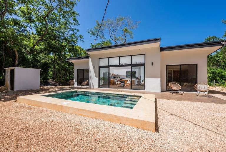 V-Caro Ju is a rare opportunity to own a furnished two-bedroom villa with private pool and a guest cottage, set on a 4,603 m2 flat, fertile lot just 15 minutes from Tamarindo. With residential use, water letter in place, and plenty of space for additional units or eco-friendly rentals, this property is perfect for those seeking a move-in-ready home with income potential and room to expand in one of Guanacaste's most sought-after regions.