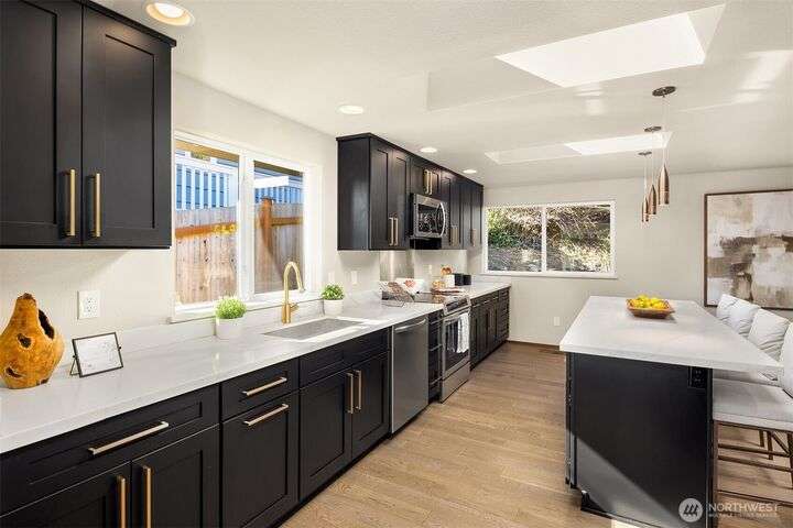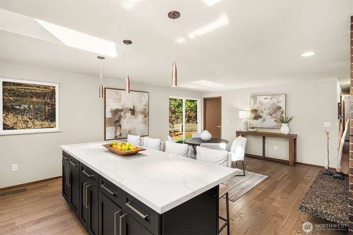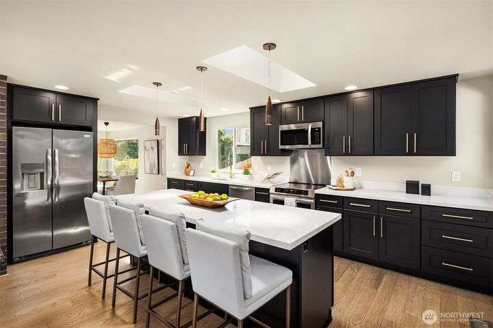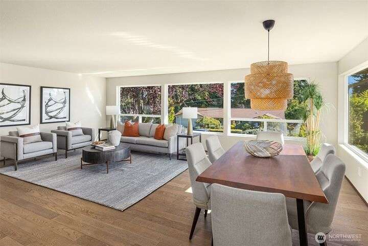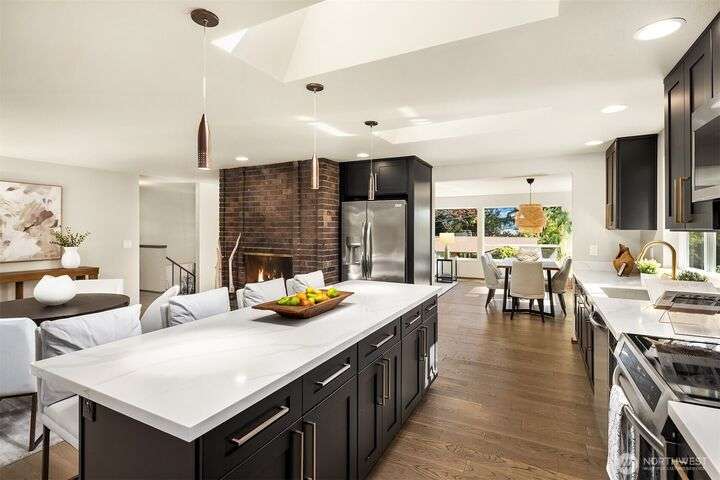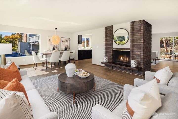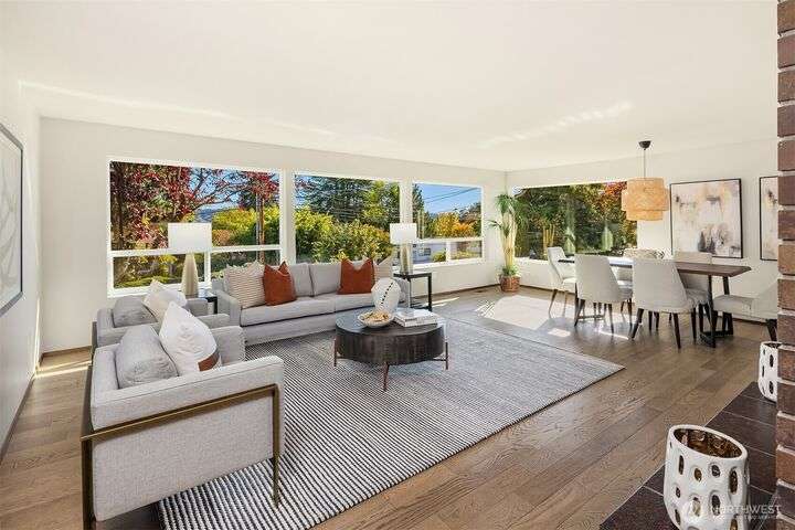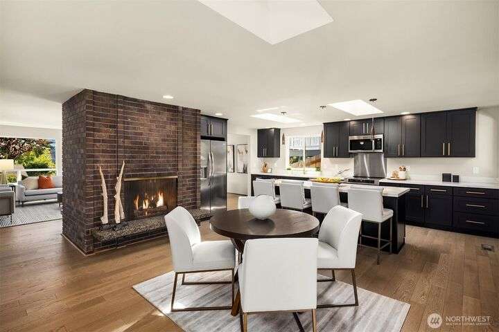 On an idyllic tree-lined street in Sheridan Heights, just west of Lake Washington, this comprehensively renovated home enjoys an abundance of space. Walls of windows invite you to enjoy territorial views and the chef’s kitchen with massive island provides the ideal hub for entertaining. From the huge primary suite with private balcony to the 2-sided brick fireplace between the living / dining rooms, spaces are carefully considered and sublime. A lower-level family room and bedroom are a perfect retreat for guests and the giant garage is waiting to inspire your next project. Moments from 522 for a breezy commute or a quick jaunt to Third Place Books, Briley’s BBQ, or Burke Gilman Trail. Sheridan Beach Club associate membership zone.
