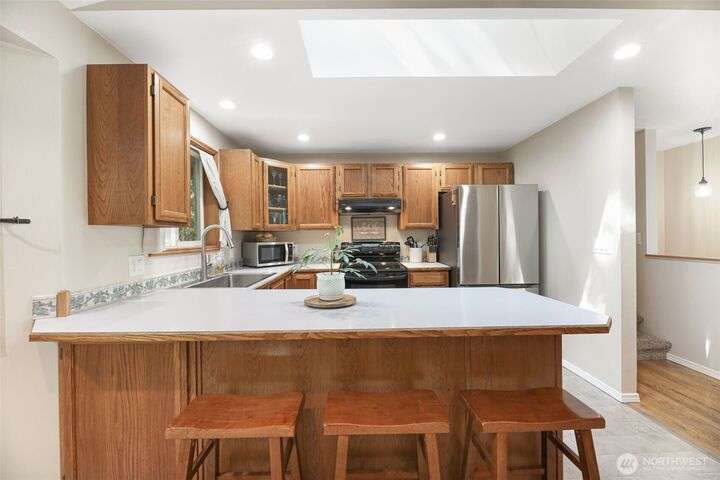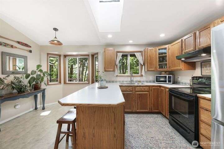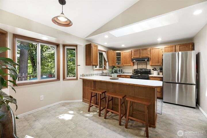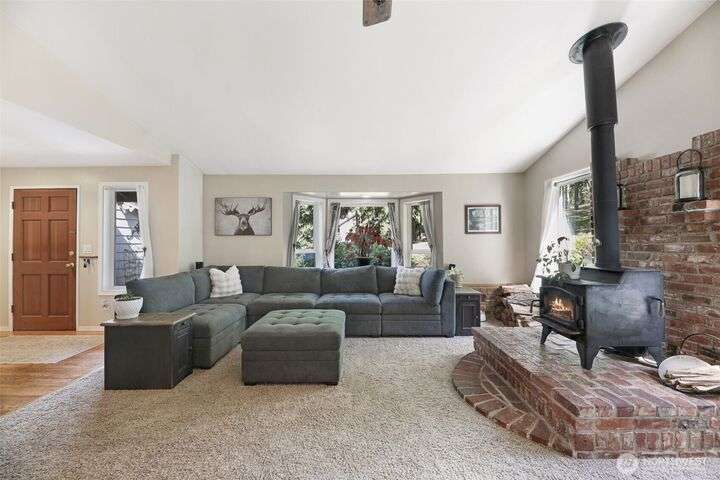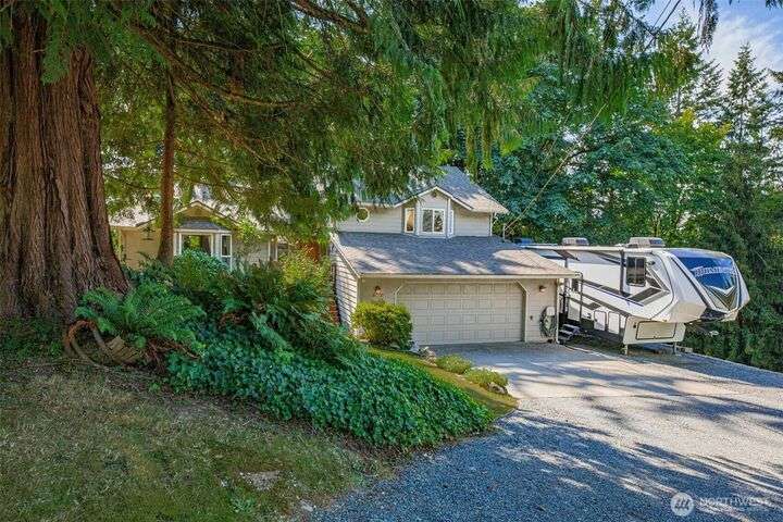 Discover this charming 3-bedroom home situated on a shy 1 acre of serene land w/ fruit trees, gardening spaces, & winter sunset views. Perfect for outdoor enthusiasts: the property features spacious RV or Boat parking. NO HOA! Giving you the freedom to customize your lifestyle. Cozy up by the inviting wood-burning stove during chilly evenings in the great room w/ high vaulted ceilings. Enjoy the outdoors on the spacious deck & take advantage of high-speed internet for work from home. The lower level big bonus room provides versatile space for entertainment or hobbies. Located on a quiet cul-de-sac, this home offers privacy while remaining close to Monroe's amenities. Pre-inspected, New Paint, & Freshly Stained Deck. Home is turn key ready.