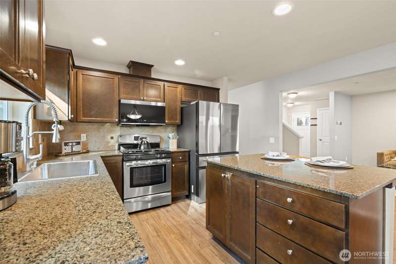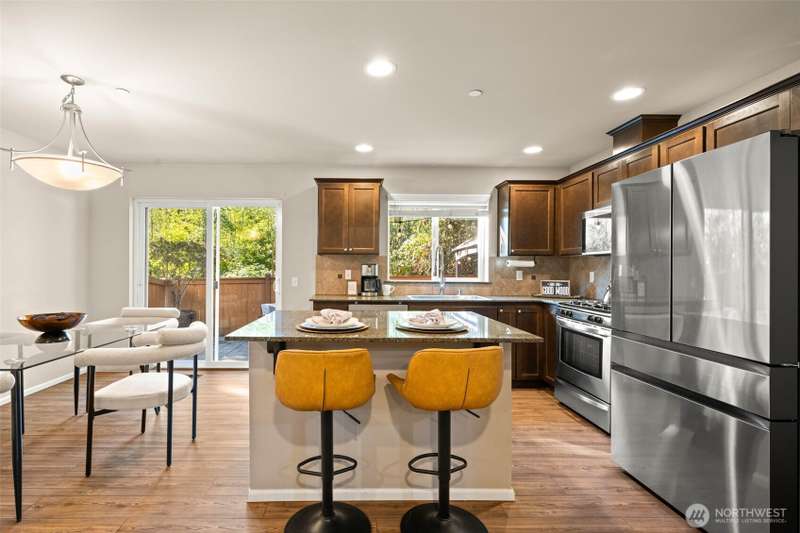 Stunning NW Craftsman in the sought-after Filbert Park community! This 3-bedroom, 2.25-bath home blends timeless design with modern comfort. The open-concept layout is filled with natural light, creating a warm and inviting feel throughout. The gourmet kitchen features quartz countertops, stainless steel appliances, island, and pantry; perfect for everyday living or entertaining. Upstairs offers a serene primary suite with walk-in closet, two bedrooms, and convenient laundry. Enjoy central A/C, a fully fenced yard backing to a greenbelt, and an ideal location near parks, great schools, Alderwood Mall, and close access to SR 524/525 and I-405/I-5 for an easy commute.