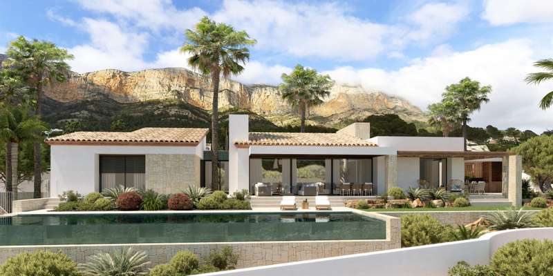 This stunning new-build villa is located in the sought-after Montgó area of Jávea, Alicante, and stands out for its contemporary design and excellent features. The property offers spaciousness and brightness in every room, as well as panoramic mountain views and proximity to the sea, golf courses, and the town center. The home features four bedrooms, each with an en-suite bathroom, ensuring privacy and comfort for every family member or guest. Additionally, there is a guest toilet. Built-in wardrobes and a walk-in closet provide functional and elegant storage solutions. The main living room benefits from a fireplace, creating a cozy atmosphere, while the kitchen and laundry area are designed to meet the highest standards. For leisure and relaxation, the villa includes a private pool and an exclusive-use garden, ideal for enjoying the Mediterranean climate. Both covered and uncovered terraces, as well as a private balcony, allow you to make the most of the views and natural surroundings. Among other outstanding features, the villa is situated in a mountain area yet close to all services and amenities. Its privileged location, together with its modern design and high-end equipment, make this property a unique opportunity for those seeking exclusivity, comfort, and quality of life on the Costa Blanca. PROJECT WITH CONSTRUCTION LICENSE