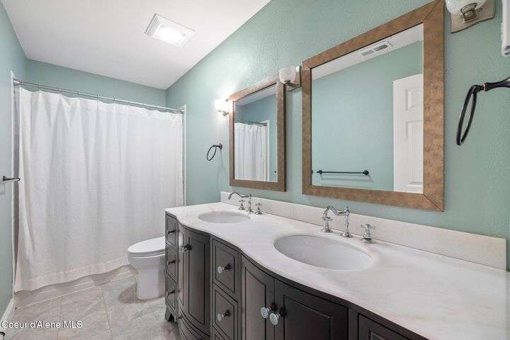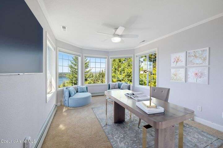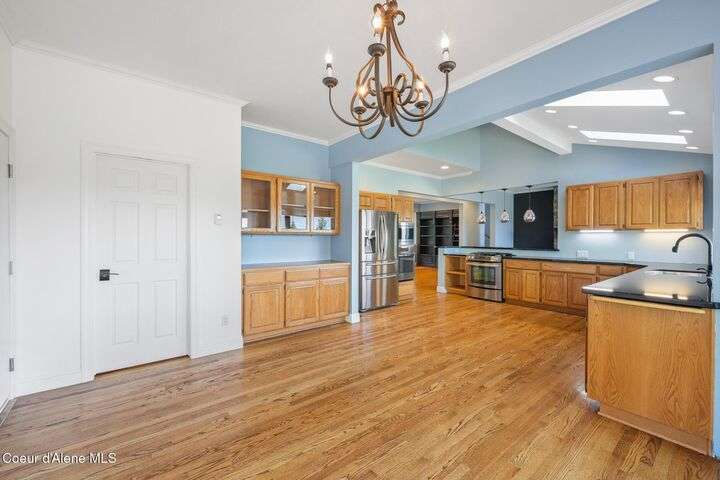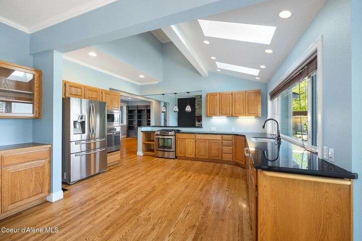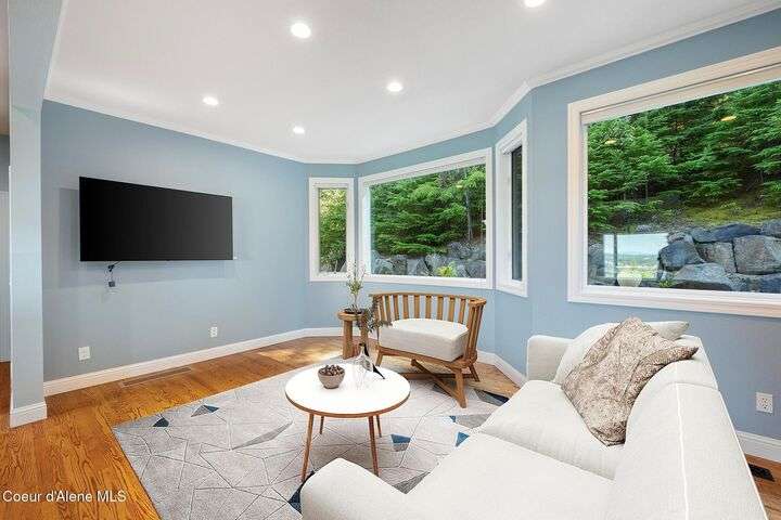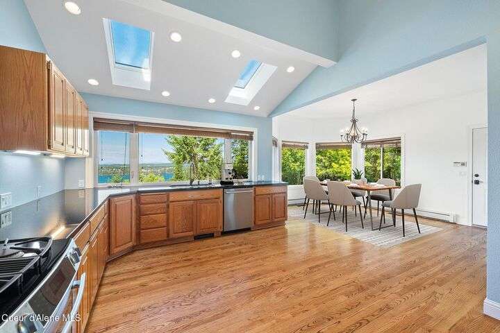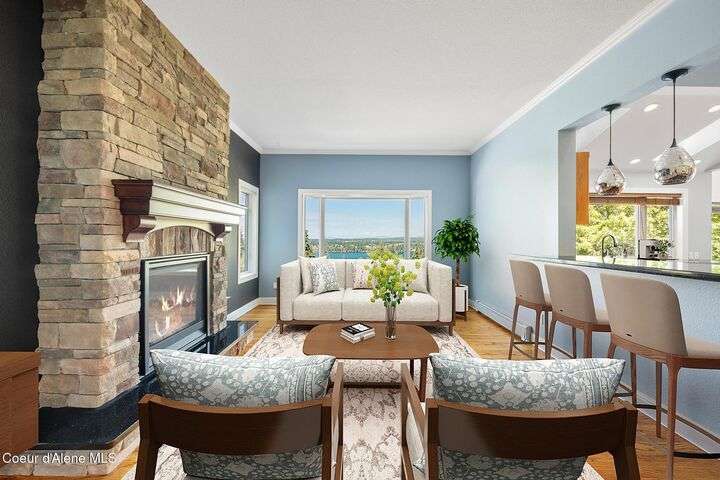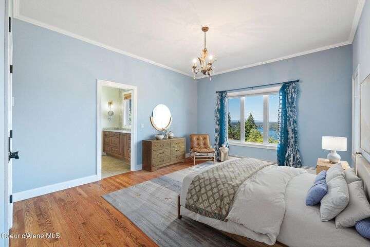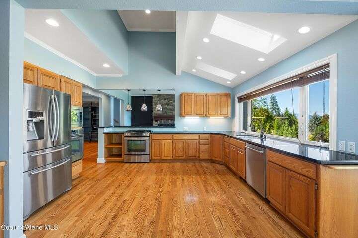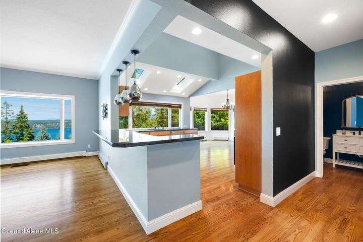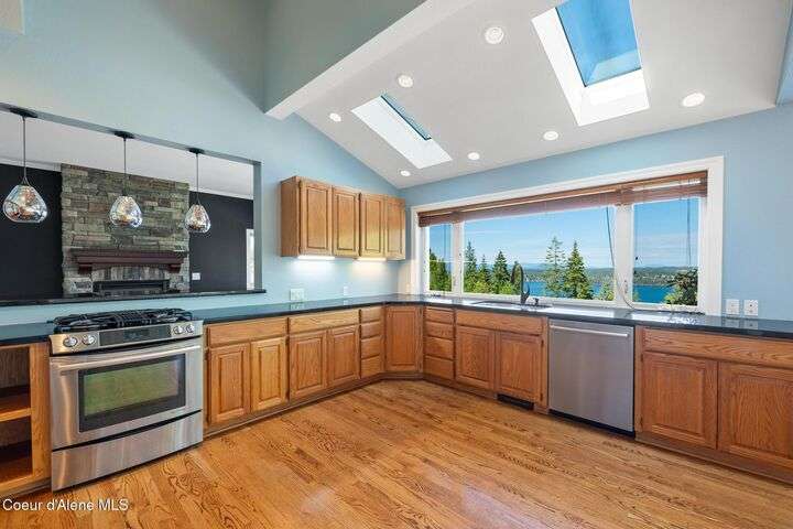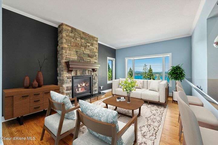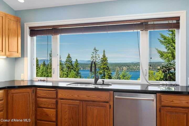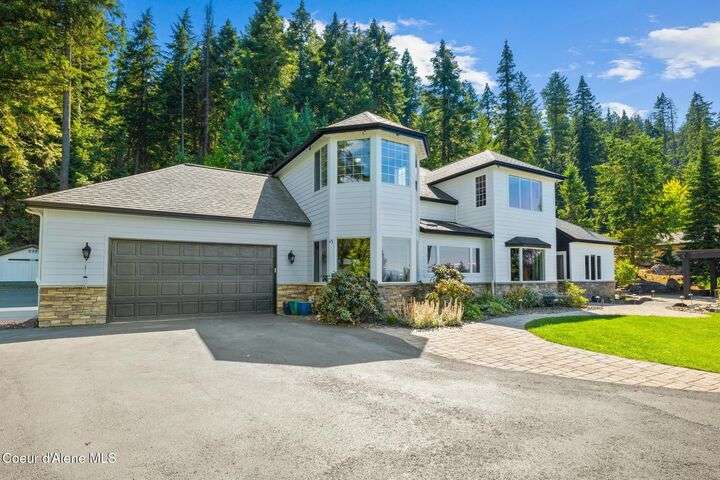 BREATHTAKING HAYDEN LAKE VIEWS! Beautifully updated home overlooking Hayden Lake with big views from virtually every room. Thoughtful floor plan with luxurious main floor master suite that includes a his and her master bath and large flex room. Chefs kitchen with granite counters, large walk in pantry and stunning views to look at while preparing a meal. Upstairs you will find more bedrooms, ample storage and big views of the lake. Back outside it is truly a paradise of high end landscaping including a pergola, large stone fireplace, custom water feature & new exterior paint. Relax by the outdoor fireplace and enjoy the peaceful and private tranquility of this amazing North Idaho setting. This is a unique opportunity on one of the best streets in the area! Located moments away from the Historic Hayden Lake Country Club, Honeysuckle Beach and a nearby Marina. Sitting on the arm of Canfield Mountain there is over 200k acres of Coeur D Alene National forest right in your backyard!