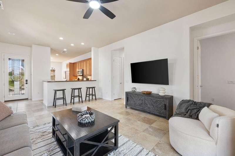 Lease Sep-APRIL 15,2026 Charming Montoya Model in 55+ Community - Move-In Ready!Discover comfort, style, and functionality in this beautifully maintained Montoya model, nestled on a quiet street in a desirable 55+ community. Offering 1,432 sq ft of thoughtfully designed living space, this home features 2 bedrooms plus a versatile den, currently set up with a queen bed to easily accommodate guests.From the moment you arrive, the exceptional curb appeal stands out with elegant hip roof lines, arched windows, mature landscaping, and a decorative cut-glass entry door that welcomes you in.Inside, you'll find freshly painted interiors, stylish tile flooring, and upgraded ceiling fans and light fixtures that create a bright, cohesive ambiance throughout. The open-concept floor plan seamlessly connects the spacious great room to the eat-in kitchen, perfect for both entertaining and everyday living.The kitchen is a chef's dream, boasting:Granite countertopsQuality cabinetry with lower pull-out shelvesStainless steel appliancesA sunny dining nookStool-height breakfast bar flowing into the living spaceAdditional highlights:New furnitureFresh paintNew beddingMove-in ready conditionAll that's missing is you! Pack your bags and book your showing today -- this gem won't last long!